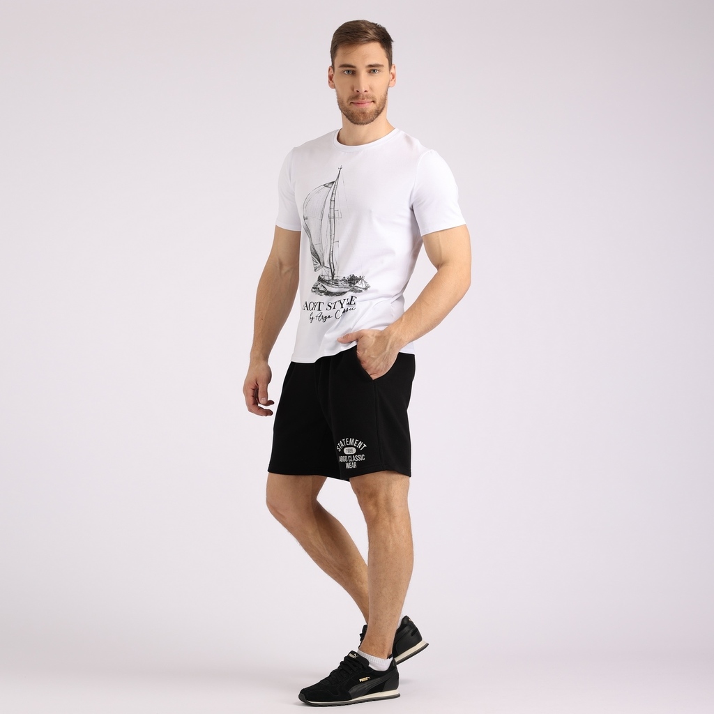 Мужская футболка с круглым вырезом горловины (принт "Newport Yachting Club").Материал: Cotton - материал из натуральных волокон, который удобен в носке, быстро впитывает и отводит от тела влагу, хорош... Показать описаниео пропускает воздух и не раздражает кожу. Хлопок гигиеничен, обладает устойчивостью к истиранию и разрыву, помогает балансировать температуру для избегания перегрева. В стирке требует более бережного обращения. Рекомендуется утюжить и стирать вывернутыми (особенно изделия с принтом) на изнаночную сторону при температуре 30 градусов.ВНИМАНИЕ! Оттенок цвета ткани может отличаться в зависимости от партии товара, также могут быть незначительные отличия цветовых оттенков разных деталей одного изделия. Производители ткани не считают это браком, объясняя это технологическими особенностями производства. Цветовая гамма товара может быть изменена (в рамках допуска) производителем трикотажных полотен в зависимости от серии поставки без предварительного уведомления.В связи с этим, подбор комплекта одежды в одном оттенке возможен только в процессе формирования единого заказа.Состав: 92% Cotton, 8% Elastane