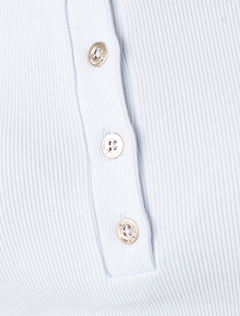 Состав: 95%Хлопок 5%ПУ Плотность: 200 Г/м2 Параметры модели на первом фото: Рост 172, бюст 88, талия 64, бедра 88 Футболка выполнена из трикотажа в широкий рубчик. Модель с квадратным вырезом дополнен... Показать описаниеа декоративными пуговицами. Эластичный хлопковый трикотаж сидит по фигуре, не сковывает движений и очень комфортный в носке. Фактура вертикальных полос визуально стройнит и вытягивает силуэт. Базовое изделие хорошо впишется в любой гардероб. Идеально подходит для многослойных образов.