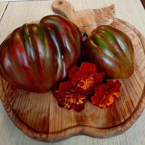 Высокорослый урожайный сорт. Плоды неправильной сердцевидной формы весом в среднем по 400г. Вкусные!