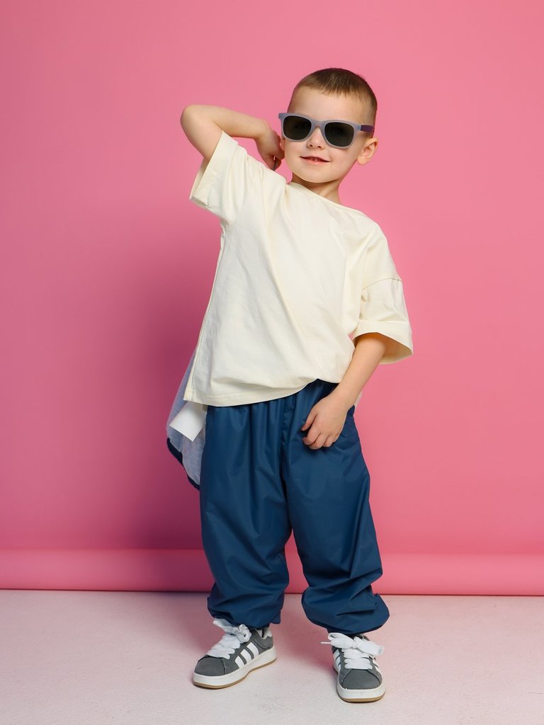 Брюки из курточной ткани свободного кроя. Пояс на резинке с кулисой и утяжкой. Манжеты на мягкой резинке. Карманы в боковых швах. ПРИМЕРНЫЙ температурный режим от +15°С.