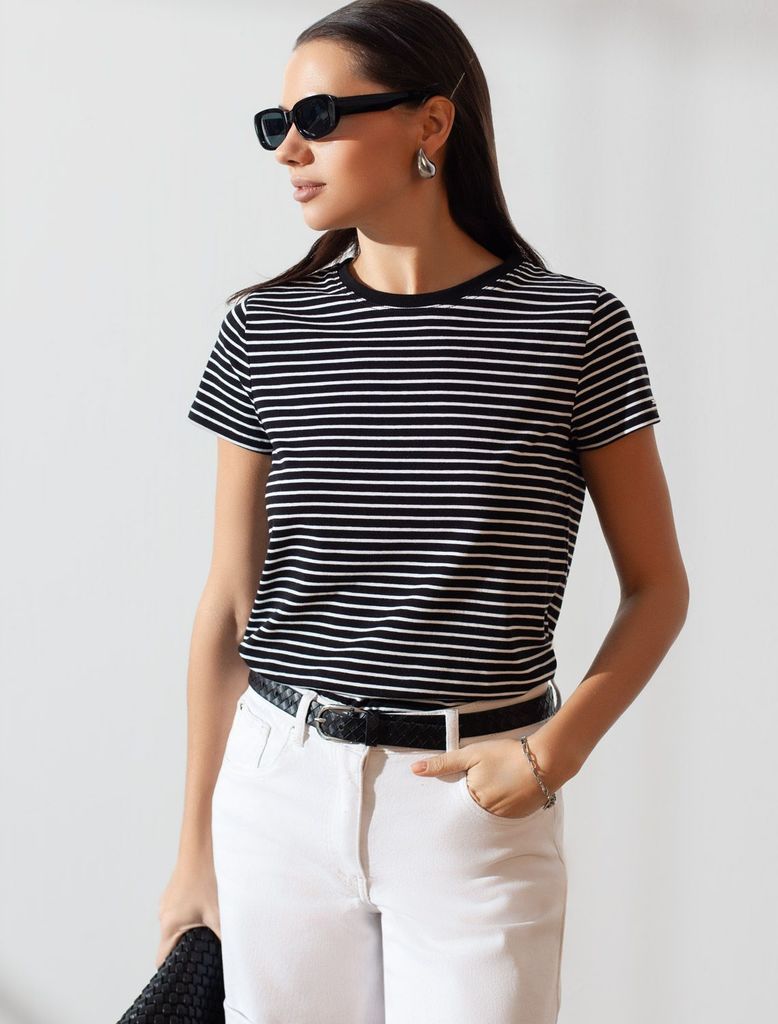Состав: 92%Хлопок 8%ПУ Плотность: 170 Г/м2 Стильная и модная женская футболка в тонкую черно-белую полоску станет отличным дополнением к вашему гардеробу. Футболка плотностью 170 Г/м2 изготовлена из п... Показать описаниеремиального хлопка с добавлением эластана. Добавление эластана в состав изделия способствует формоустойчивости. Эта классическая футболка подходит для создания кэжуал образа на каждый день и идеально подойдет для работы. Модель не мнется, что делает ее практичным вариантом для активных женщин, которые ценят стиль и удобство. Благодаря современному принту полоска эта футболка легко комбинируется с различными элементами гардероба. Она станет универсальным решением для тех, кто предпочитает комфортный стиль casual. Повседневная футболка подчеркнет вашу индивидуальность и позволит вам выглядеть привлекательно в любой ситуации. Легкость в уходе и высокая износостойкость делают ее незаменимой вещью в вашем гардеробе. Одевайте эту модель как на работу, так и на встречу с друзьями — она всегда будет уместна! Стильная и практичная модель с простым кроем и лаконичным дизайном - идеальный вариант для тех, кто ценит качество, минимализм и классический стиль в одежде.