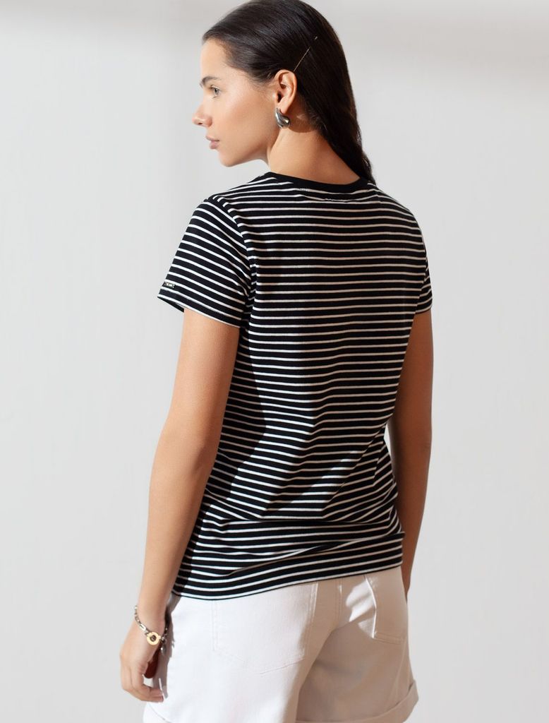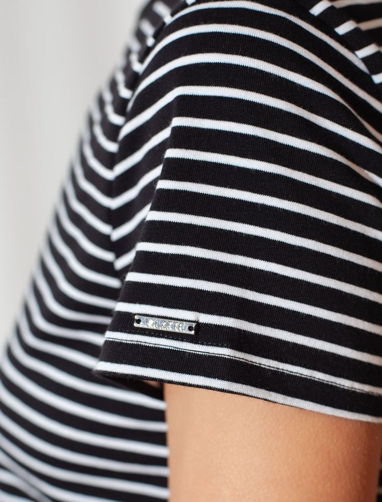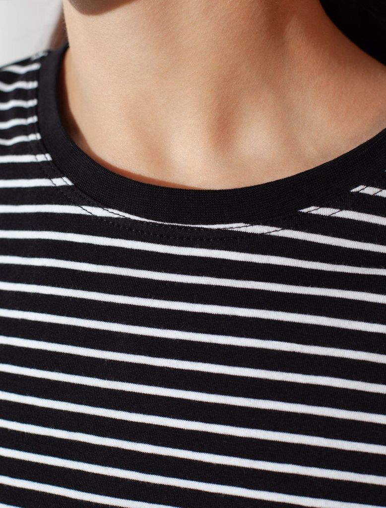 Базовая футболка в полоску полуприлегающая из премиального хлопка с эластаномВопросы по товару