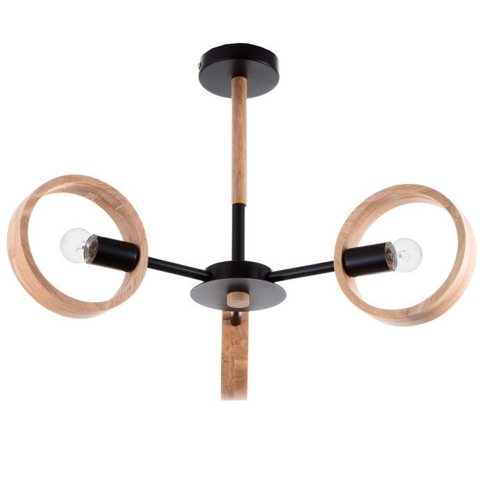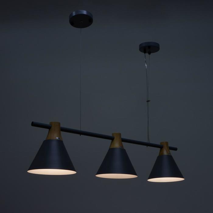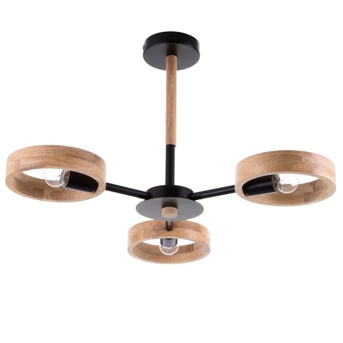 Создайте атмосферу уюта с помощью света! Подвесная люстра на три плафона — это современный светильник, сочетающий металл и натуральное дерево. Модель подходит для жилых помещений и общественных простр... Показать описаниеанств, создавая рассеянное освещение без бликов. * Три плафона из дерева: Круглые абажуры направляют свет в стороны, обеспечивая равномерное освещение площади до 9 м?. Подходят для ламп накаливания или светодиодных ламп с цоколем Е27. * Универсальный черный цвет: Металлическое основание выполнено в классическом черном оттенке, который сочетается с деревянными элементами. Такая комбинация вписывается в скандинавский, современный и кантри стиль. * Стабильное крепление: Люстра монтируется на планку, что обеспечивает надежную фиксацию на потолке. Конструкция совместима с натяжными потолками при использовании светодиодных ламп. * Четкие параметры: Размеры 70?70?55 см позволяют гармонично разместить светильник в помещениях с высотой потолков от 2,5 метров. Высота фиксированная — 55 см от потолка. Особенности использования: Люстра освещает гостиную, спальню, кухню или зону в кафе. Для комфортного света выбирайте лампы теплого свечения мощностью до 60 Вт на каждую рожков. Светильник поставляется без ламп в комплекте — вы самостоятельно подбираете подходящий тип освещения. Дополнительно Тип крепления к потолку: планка.