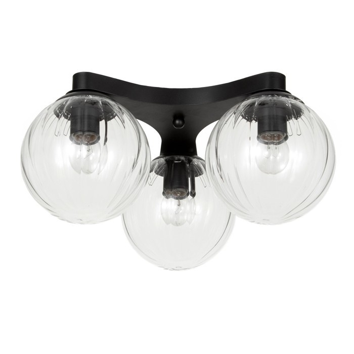 Минимализм и функциональность в каждой детали! Потолочная люстра BayerLux с тремя шарами — это лаконичный светильник для современных интерьеров. Чёрное основание и прозрачные стеклянные плафоны создаю... Показать описаниет эффектный контраст. * Три стандартных цоколя E27: Используйте лампы накаливания или светодиодные лампы мощностью до 40 Вт. Этого достаточно для создания комфортного локального освещения. * Прозрачные стеклянные плафоны-шары: Сферическая форма обеспечивает равномерное рассеивание света. Прозрачное стекло подчеркивает современную эстетику. * Компактное потолочное крепление: Высота 20 см от потолка делает модель удобной для помещений с невысокими потолками. Люстра монтируется на стандартную планку. * Чёрное металлическое основание: Матовое покрытие выглядит строго и современно. Контраст с прозрачными шарами создает визуальный интерес. Практическое применение: Светильник освещает помещения до 6 м? и подходит для спальни, кухни или небольшой гостиной. Совместимость с натяжными потолками при использовании светодиодных ламп расширяет возможности применения. Стиль модерн и хай-тек делает эту люстру уместной в интерьерах с четкой геометрией и лаконичным дизайном.