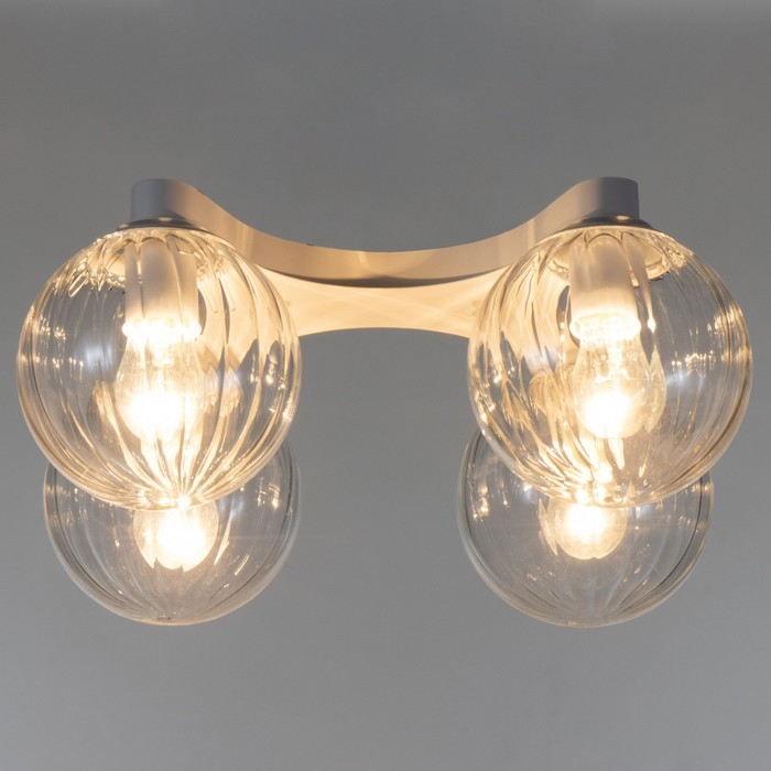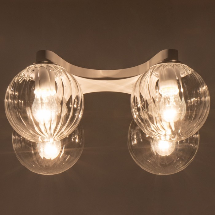 Современная лаконичность для вашего интерьера! Потолочная люстра BayerLux с четырьмя шарами — это минималистичный светильник в белом исполнении. Модель сочетает простоту форм и эффективное освещение. ... Показать описание* Четыре стандартных цоколя E27: Используйте лампы накаливания или светодиодные лампы мощностью до 40 Вт. Это создает равномерное освещение с направленным вниз световым потоком. * Прозрачные стеклянные плафоны-шары: Сферическая форма обеспечивает мягкое рассеивание света. Прозрачное стекло сохраняет современную эстетику минимализма. * Компактное потолочное крепление: Высота 20 см от потолка делает модель удобной для помещений с разной высотой. Люстра монтируется на стандартную планку. * Белое металлическое основание: Нейтральный цвет гармонично сочетается с прозрачными шарами. Дизайн подходит для интерьеров в стиле модерн и хай-тек. Практическое применение: Светильник освещает помещения до 8 м? и подходит для гостиной, спальни или кухни. Совместимость с натяжными потолками при использовании светодиодных ламп расширяет возможности применения. Геометричная простота форм делает эту люстру уместной в современных интерьерах с четкими линиями и минималистичной эстетикой.