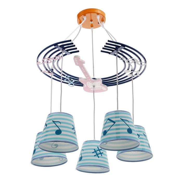 Свет, который вдохновляет на подвиги Подвесной светильник для мальчика, голубой, 5 ламп, E27, провод — яркое и надёжное решение для детской комнаты площадью до 10 м?. Пять цилиндрических абажуров, рег... Показать описаниеулируемая высота и свежие оттенки создают атмосферу движения и приключений без излишнего шума в дизайне. * Дизайн для юного исследователя: Голубое металлическое основание и одинаковые по цвету текстильно-пластиковые абажуры формируют целостный, выдержанный образ. Цветные рассеиватели добавляют энергии пространству — подходят для тематик: космос, море, самолёты или город будущего. * Пять точек света с гибким выбором ламп: Пять патронов E27 работают с лампами до 40 Вт. Возможность установки светодиодных источников делает светильник безопасным для натяжных потолков и снижает энергопотребление. * Настройка под высоту комнаты: Подвес на проводе позволяет выставить люстру на высоту от 27 до 107 см. Это удобно как для стандартных квартир, так и для помещений с высокими потолками — можно точно задать уровень освещения над кроватью или столом. * Функциональный свет вниз: Абажуры направлены строго вниз, обеспечивая чёткую засветку рабочей зоны. Рассеиватель из текстиля и пластика смягчает поток, исключая резкие тени и блики. Освещение как часть мира ребёнка: Эта люстра не просто даёт свет — она становится частью повседневной вселенной мальчика. Её выбирают для детской, где важно сочетать практичность, безопасность и дух приключений. Управление через обычный выключатель — без лишних сложностей. Видео в карточке покажет, как светильник смотрится в реальном интерьере. Выбирайте свет, который поддерживает интерес — спокойный, но не скучный, яркий, но не раздражающий.