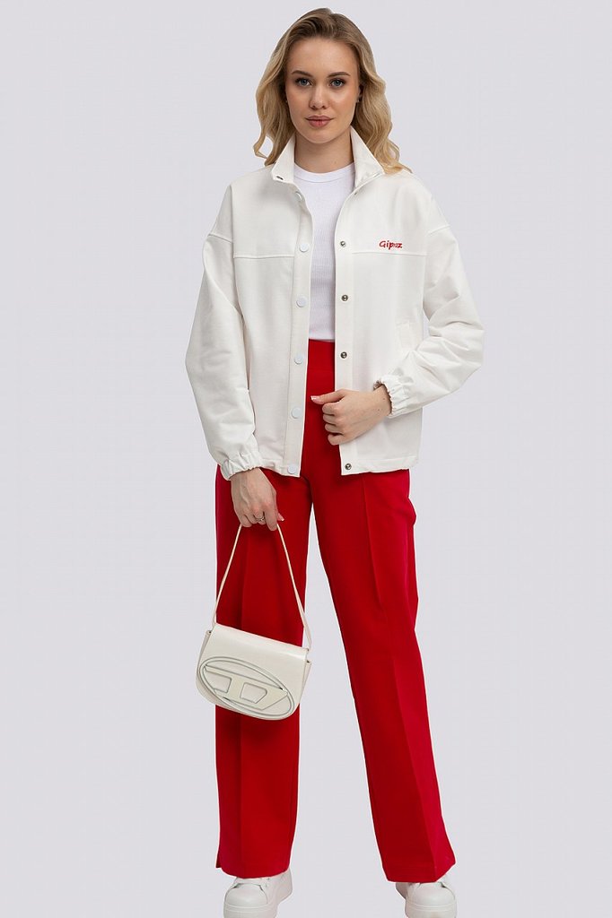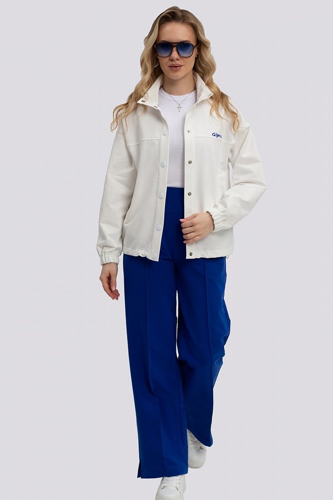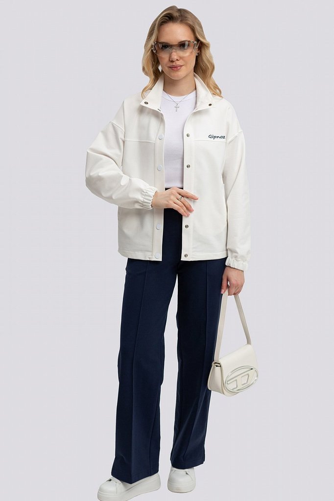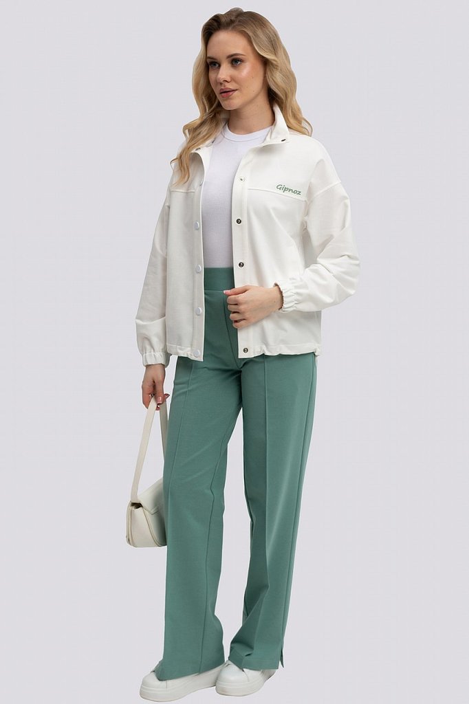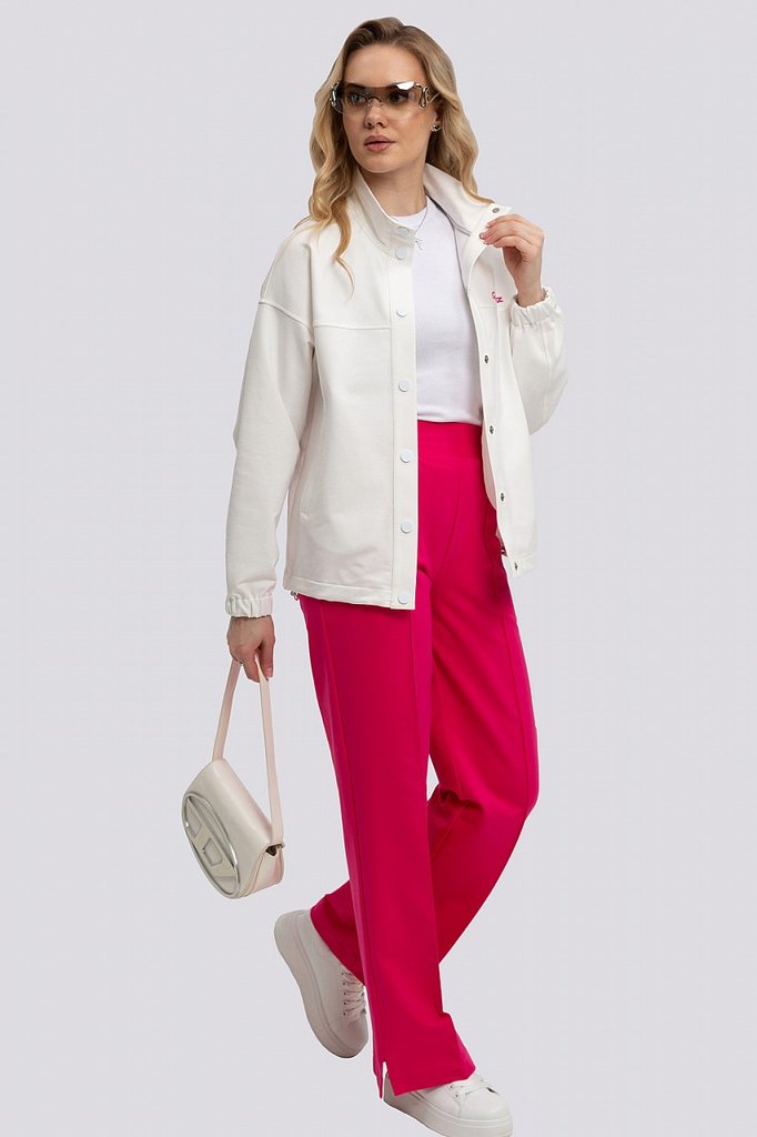 Изящный и элегантный костюм, в котором жакет притягивает взгляд своей белоснежностью, а контрастные брюки придают неотразимость, создан для тех, кто ценит стиль и комфорт. Жакет, застегивающийся на кн... Показать описаниеопки, с воротником-стойкой и спущенным плечом, демонстрирует расслабленную элегантность. Низ рукава на резинке добавляет спортивный шик, а карманы-листочки подчеркивают лаконичность дизайна. Брюки широкие и струящиеся, с небольшими разрезами по низу, призваны добавить образу шика и динамики. Эластичный пояс обеспечивает идеальную посадку и комфорт в движении, а карманы в швах сохраняют чистоту линий. Этот костюм – идеальный выбор для современной женщины, ценящей безупречный стиль и удобство в каждой детали. Он подойдет как для деловых встреч, так и для непринужденных прогулок, позволяя всегда выглядеть безупречно и чувствовать себя уверенно. Состав трикотажа: 75% хлопок, 20% полиэстер, 5% спандекс.