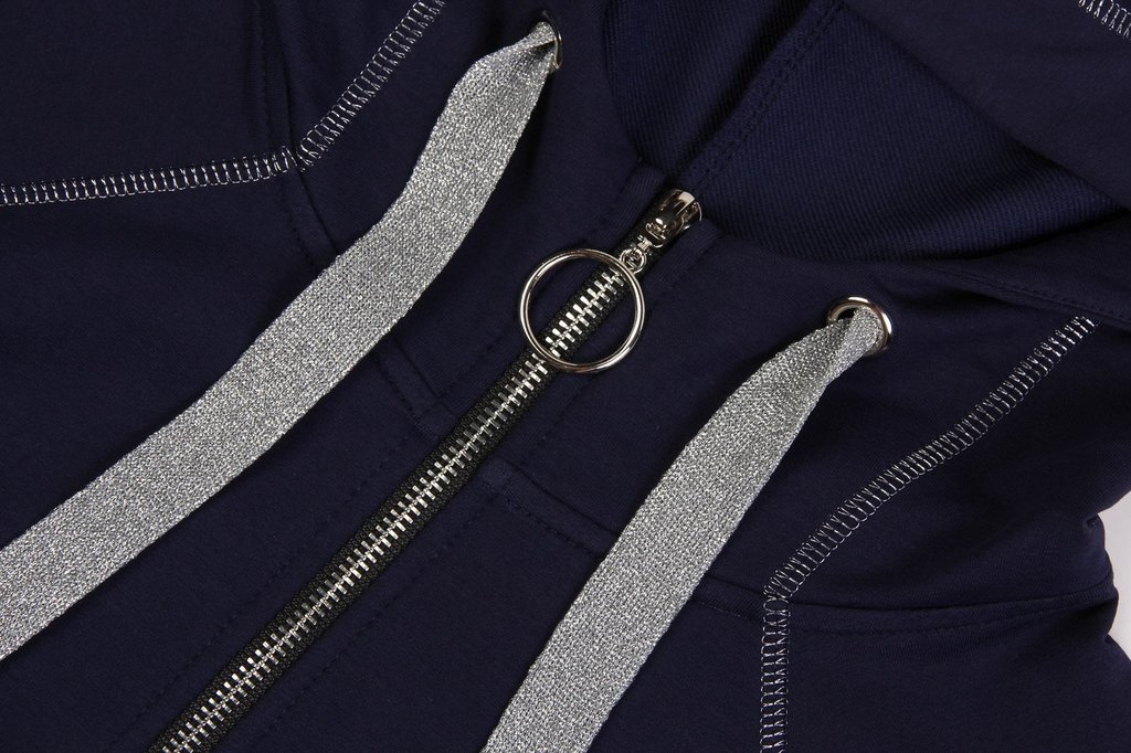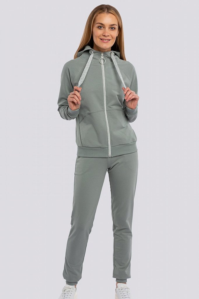 Каждая девушка мечтает выглядеть привлекательно в любой ситуации. Выглядеть стильно и красиво можно в самом обычном спортивном костюме. Главное найти костюм, подчеркивающий ваше хорошее чувство вкуса ... Показать описаниеи индивидуальность. Незаменимый вариант для занятий фитнесом, активным отдыхом или в поездках, для прогулки и неофициальных мероприятий в городе. Толстовка на молнии с карманами для мелочей и небольшим капюшоном. Швы отстрочены декоративной строчкой серебристыми нитками. Брюки слегка зауженные книзу и заканчиваются манжетами. Оригинальные строчки серебристыми нитками добавляют женственности. Состав трикотажа: 75% хлопок, 20% полиэстер, 5% спандекс.