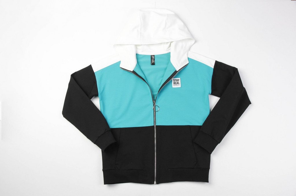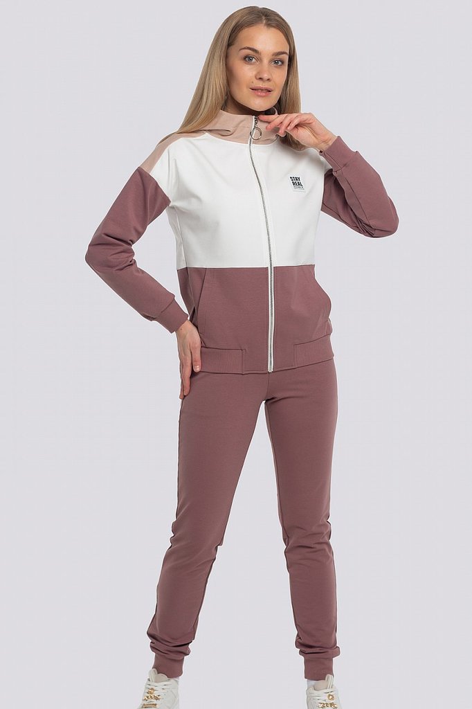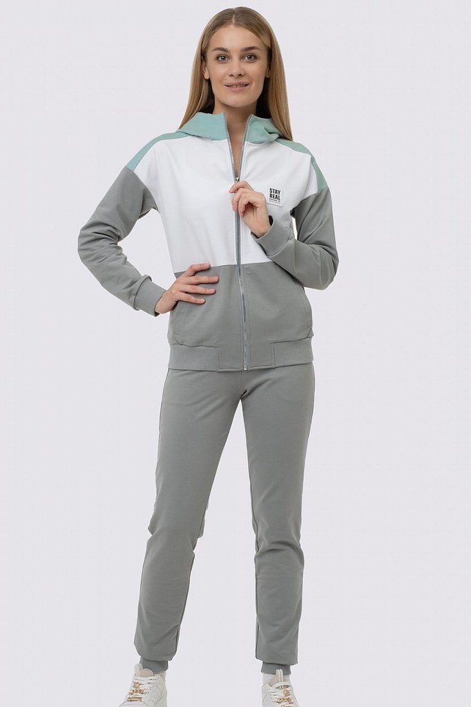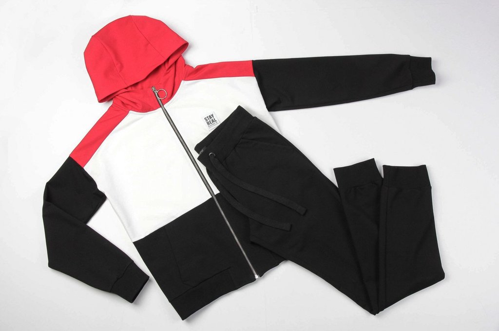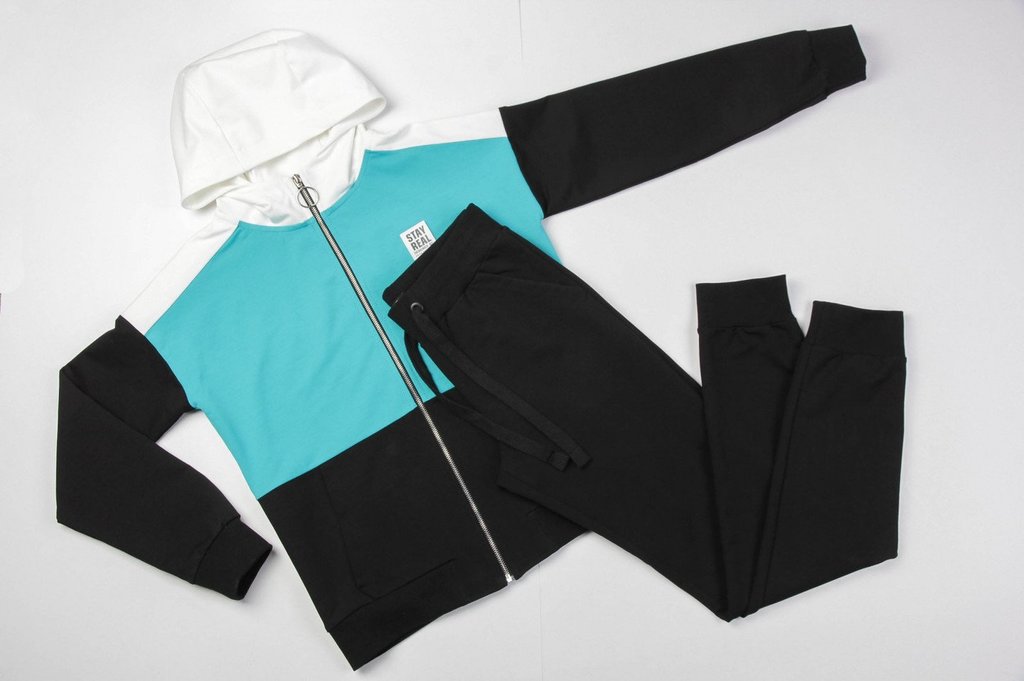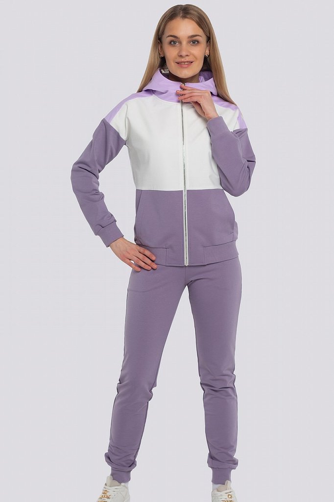 Заниматься спортом, гулять, общаться с друзьями — эти действия должны присутствовать в жизни каждой активной леди, поэтому модный трикотажный костюм в спортивном направлении обязан присутствовать в ва... Показать описаниешем гардеробе безоговорочно. Костюм состоит из олимпийки и брюк. Яркость костюму придает оригинальное сочетание разных цветов и контрастной тесьмы. Олимпийка с капюшоном, центральная застежка на молнию. Спереди карманы с листочкой. Низ олимпийки и низ рукава обработаны поясом и манжетами. Брюки свободные, пояс брюк на резинке, низ обработан манжетами. Состав трикотажа: 75% хлопок, 20% полиэстер, 5% спандекс.