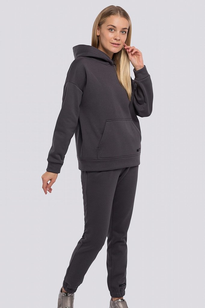 Новинки представляют собой не только костюмы для офиса, но и стильные молодежные модели. Одежда в стиле оверсайз удобна во всех проявлениях. Свободное худи не обтягивает фигуру, укороченная длина позв... Показать описаниеоляет продемонстрировать красивые формы. Брюки-джоггеры умеренного объема, посадка – на талии, пояс с резинкой, снизу манжет на резинке. Кроме того, костюм выдержан в спортивном стиле, что позволяет носить его в различных обстоятельствах. Он уместен в кафе, на прогулке в парке или на спортивной площадке. Модель очень сдержанна по дизайну – лишь лаконичный фирменный логотип. Состав трикотажа: 75% хлопок, 20% полиэстер, 5% спандекс.