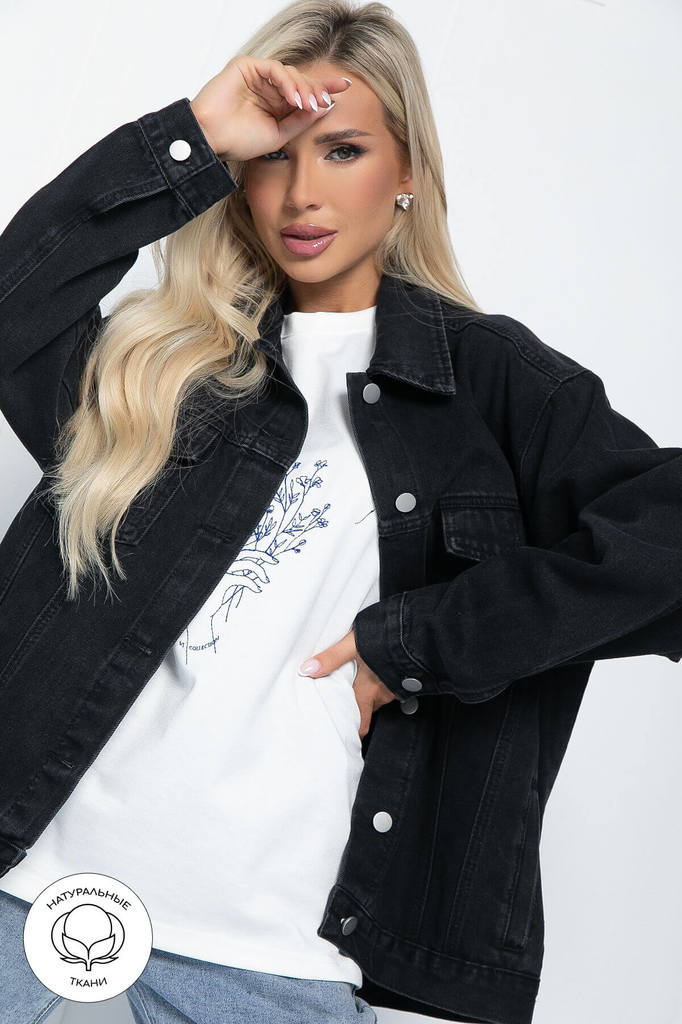 Артикул: Б11268. Тип ткани: смесовая. Состав: 95% хлопок, 5% эластан. Материал: джинса. Цвет: черный. Принт: отсутствует. Вид застежки: пуговицы. Силуэт: свободный. Карманы: есть. Подкл... Показать описаниеадка: отсутствует. Декоративные элементы: отсутствуют. Длина изделия от шва плеча: 44-52/ 65 см. Размер изделия на модели: 44. Рост модели: 168 см. Универсальная джинсовка, которая станет вашим незаменимым спутником в любое время года! Этот стильный и классический элемент гардероба легко впишется в различные образы – от повседневных до спортивных. Уход за изделием: ручная стирка до 30 градусов; нельзя отбеливать; отжим запрещён; гладить при t не более 110 С; гладить с изнанки. Внимание! Рекомендуем ориентироваться на размерную сетку и выбирать свой привычный размер, согласно размерной таблице. *Допуск отклонения длины при массовом производстве 1-3 см является нормой.