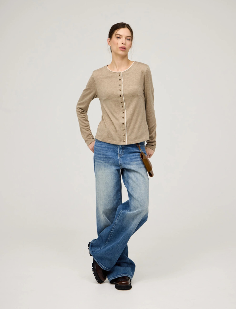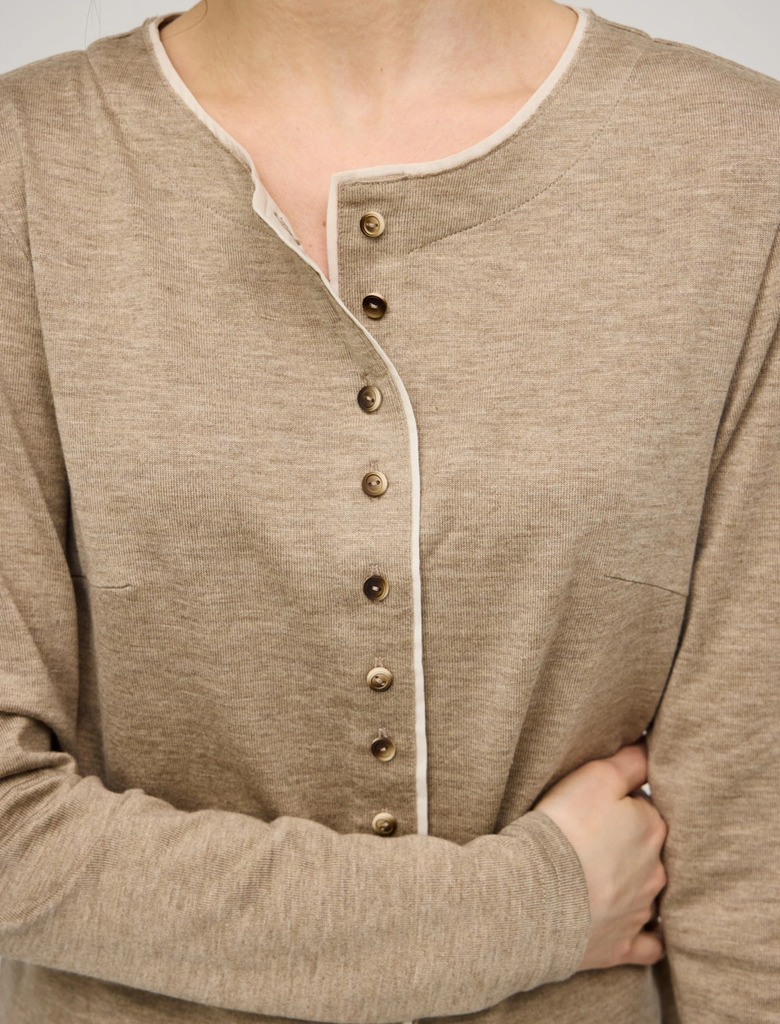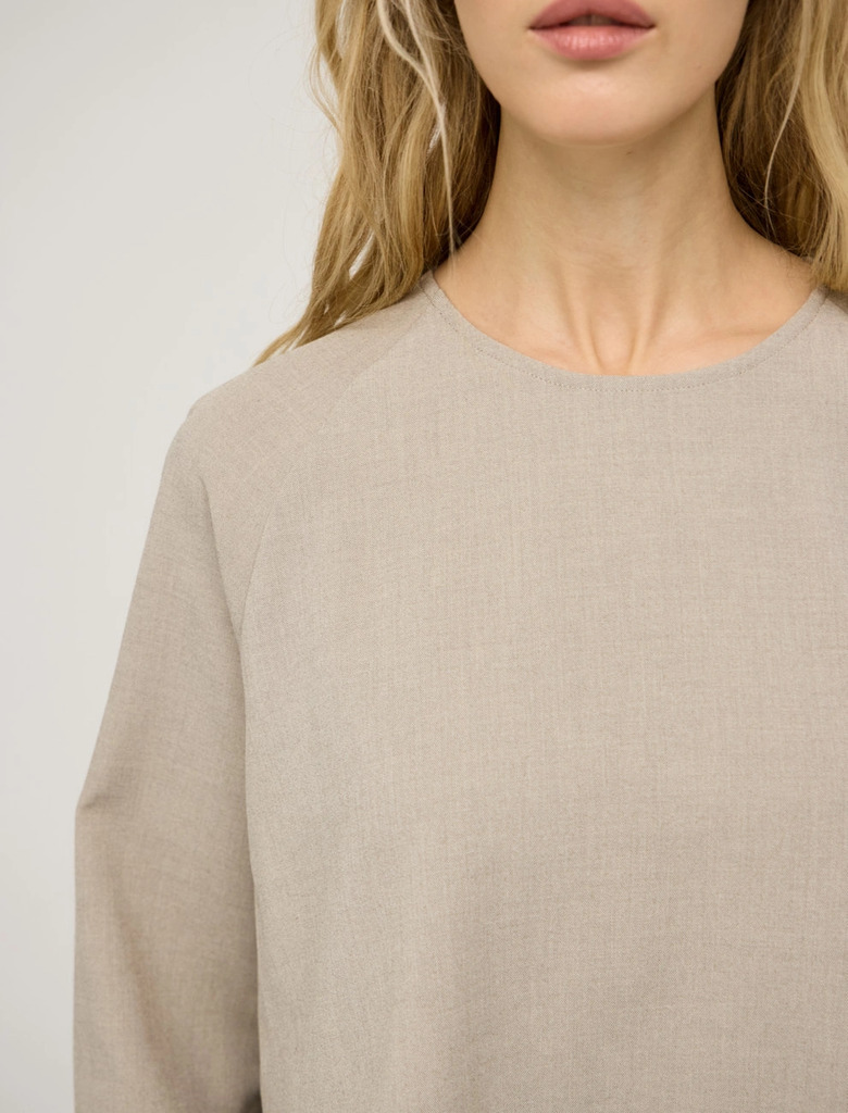 Видео: https-//hassfashion.ru/upload/iblock/452/eidb6o0qmws06bekzcxu3q5wtixoy2j5.mp4 весна-лето А:81% Хлопок, 16% Лен, 3% Спандекс В: 100% Тусса-шелк Блузка регулярного силуэта с круглой горловиной и ... Показать описаниедлинными рукавами по типу реглан. Верхняя часть блузки укороченная и выполнена из костюмной ткани. Нижняя вставка из тусса-шелка с разрезами в боковых швах и длиной ниже колена. Представлена в бежевом цвете.