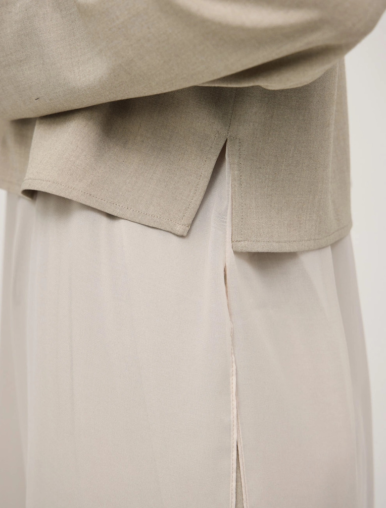 Бежевая блузка с шелковой юбкой Вопросы по товару