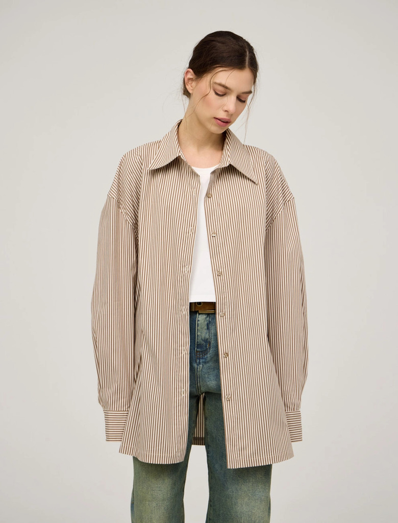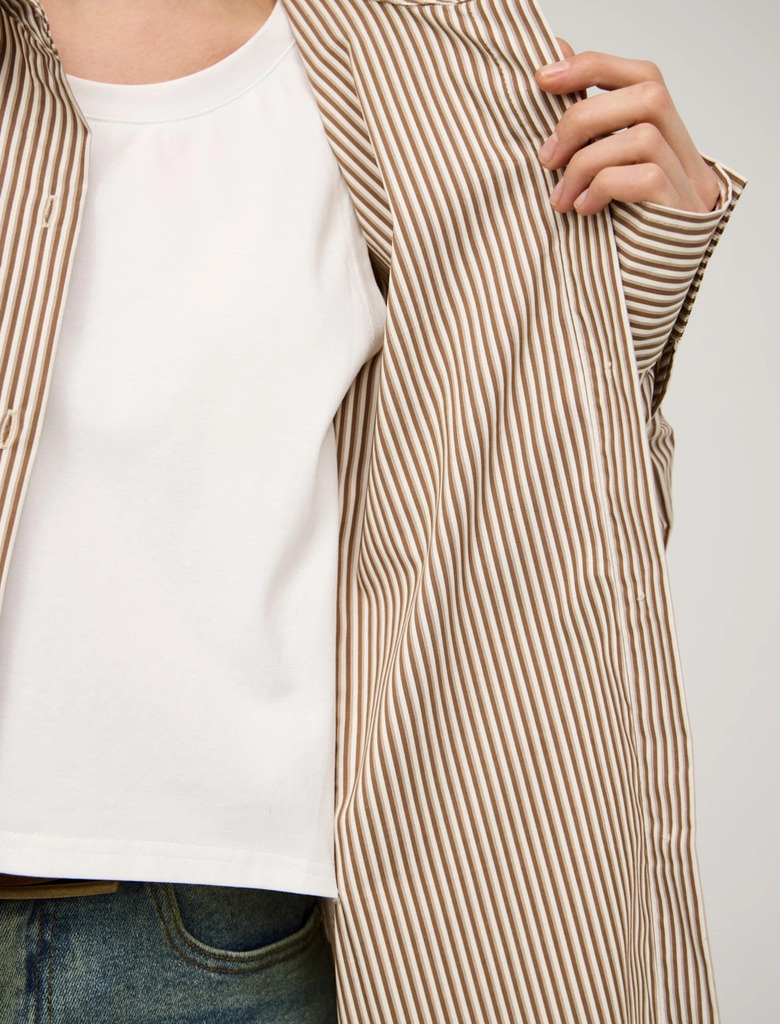 Бежевая полосатая рубашка с топомБежевая полосатая рубашка с топомБежевая полосатая рубашка с топом