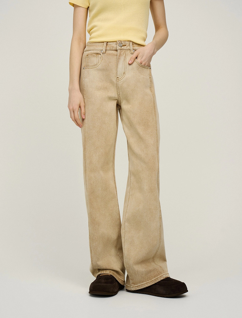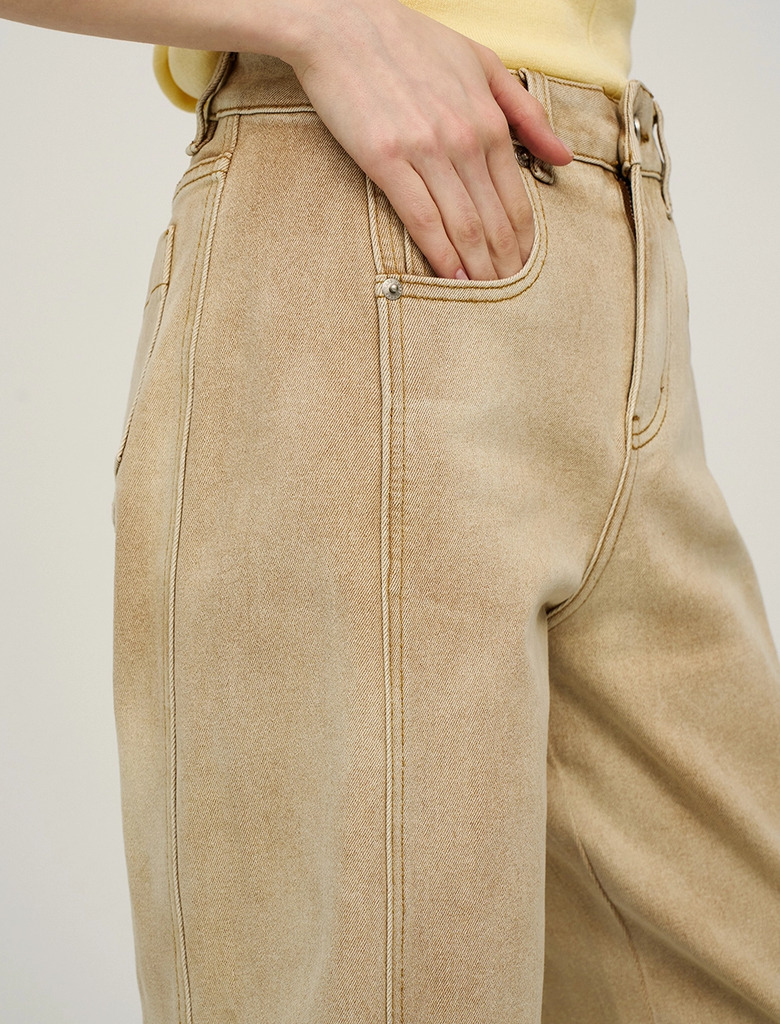 Видео: https-//hassfashion.ru/upload/iblock/b88/8w757agio5f32cspwdcb8ti7q5yjjzlu.mp4 осень-зима 60% Хлопок, 30% Тенсел, 10% Спандекс Брюки прямого силуэта с посадкой на уровне талии. По поясу эластичн... Показать описаниеая резинка. По передней части изделия – вертикальные швы, вытягивающие силуэт. Сзади, с правой стороны – накладной карман. Выполнены из хлопка и тенсела с добавлением спандекса, что обеспечивает комфорт и долговечность. Саржевое переплетение придает ткани прочность и интересный диагональный рисунок. Представлены в коричневом и бежевом оттенке.