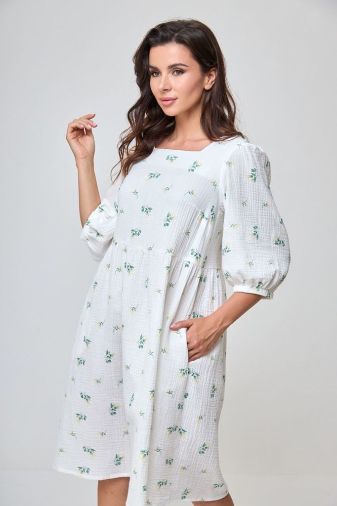Состав: Хлопок-100%; Сезон: Лето Рост: 164 Страна бренда: Беларусь Состав: Хлопок-100%; Платье женское, оверсайз, длиной до колена. Рукав втачной со сборкой по окату, низ на резинке, длина 3/4. Платья... Показать описание отрезное по талии, юбка на сборке. По переду квадратный вырез горловины, выгодно подчеркивающий вашу шею и лицо. На спинке глубокий V-образный вырез, на двух уровнях функциональные завязки. Верхнюю завязку рекомендуем сильно не затягивать, так как будет затягивать горловину переда. Отличный и стильный вариант для прогулок и работы, а уникальный материал позволит вам чувствовать себя комфортно в платье, как летом, так и осенью. Вся необходимая информация о производителе указана на этикетке. Цвет на фото может отличаться от цвета изделия вживую из-за разницы освещения и цветопередачи экранов, на которых просматривается изображение. Замеры: Рост фотомодели - 170 см. Размер фотомодели - 46. ОГ-обхват груди; ОТ-обхват талии; Об-обхват бедер; ДИ-длина изделия; ДР-длина рукава Размер 44. ОГ- 88; ОТ-90; ОБ-118; ДИ-101; ДР-41. Размер 46. ОГ- 92; ОТ-94; ОБ-122; ДИ-101; ДР-41. Размер 48. ОГ-96; ОТ-98; ОБ-126; ДИ-102; ДР-42. Размер 50 . ОГ- 100; ОТ-102; ОБ-130; ДИ-102; ДР-42. Размер 52. ОГ- 104; ОТ-106; ОБ-134; ДИ-103; ДР-43. Размер 54 . ОГ- 108; ОТ-110; ОБ-138; ДИ-103; ДР-43.