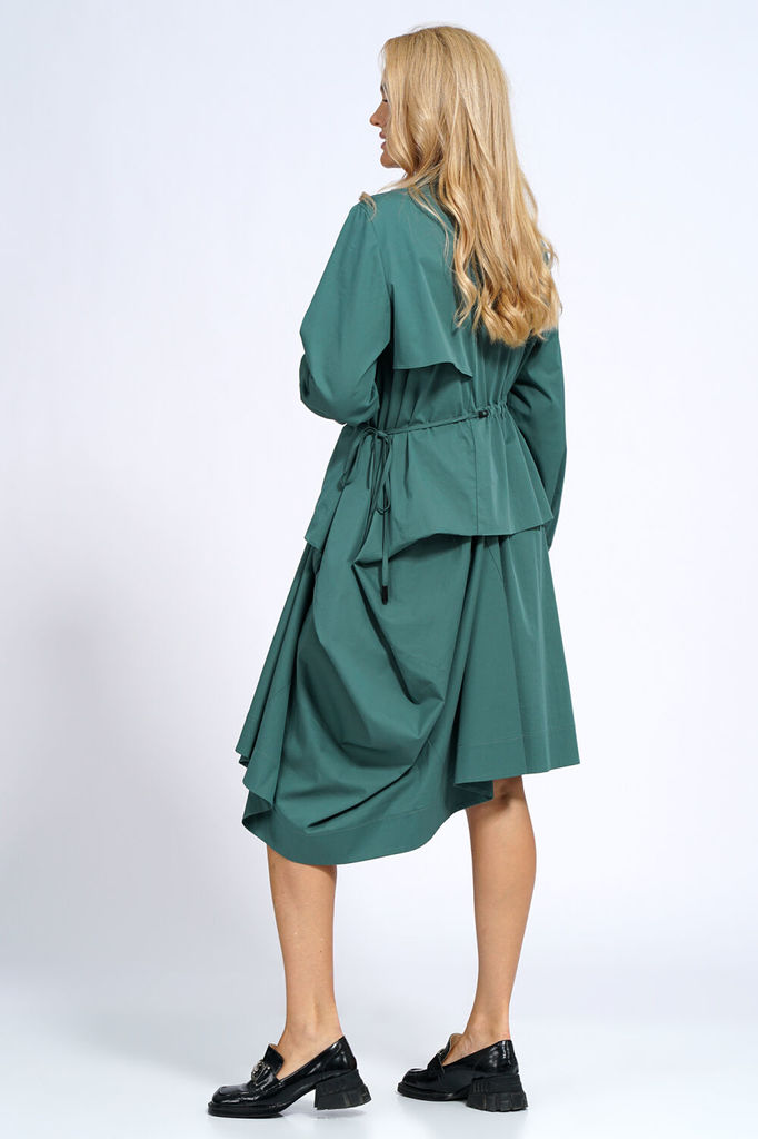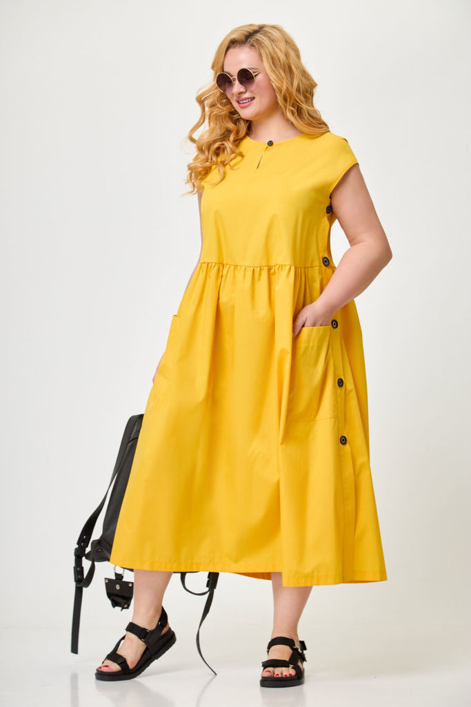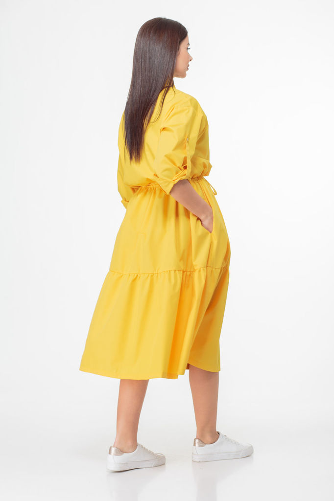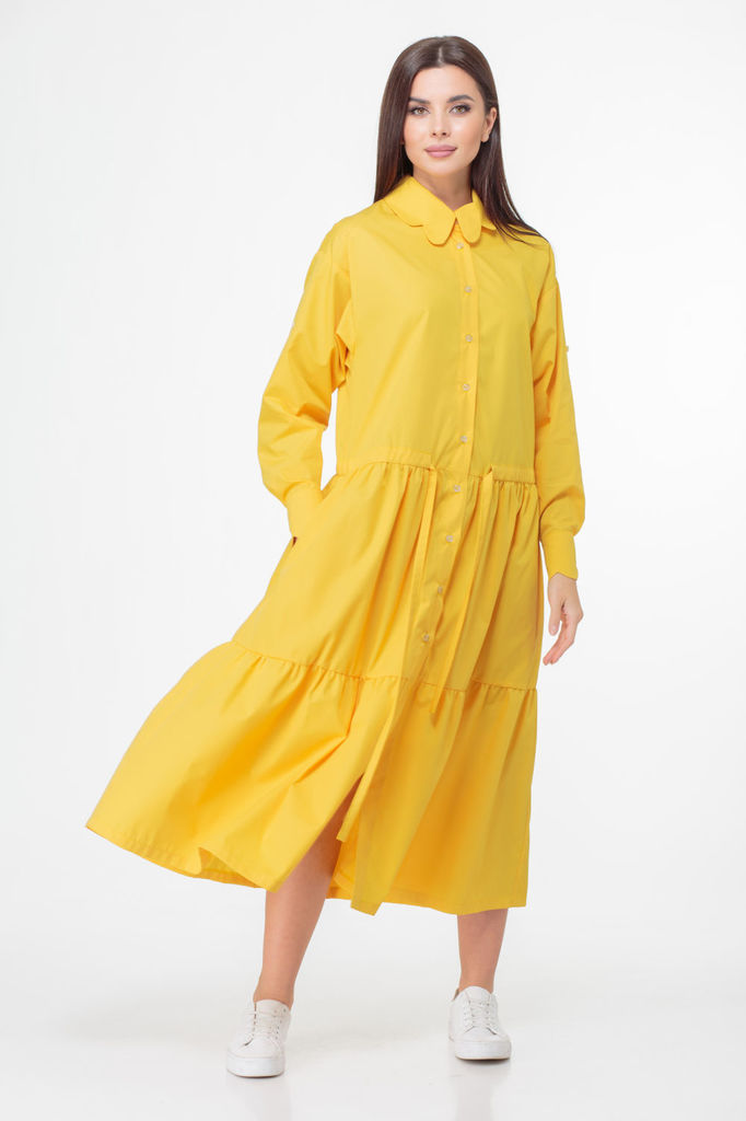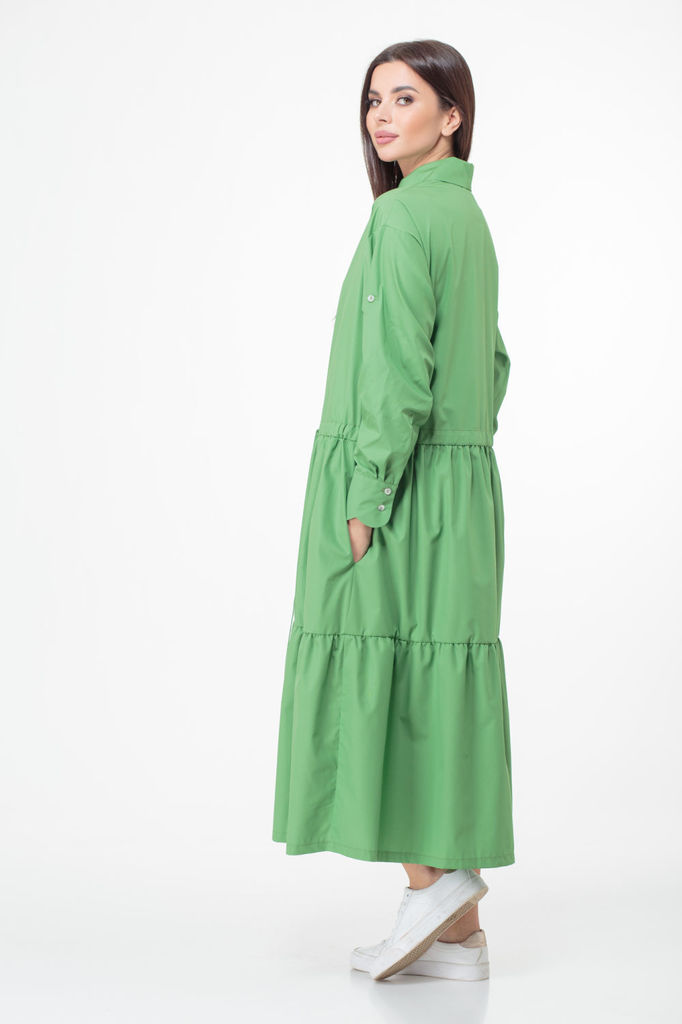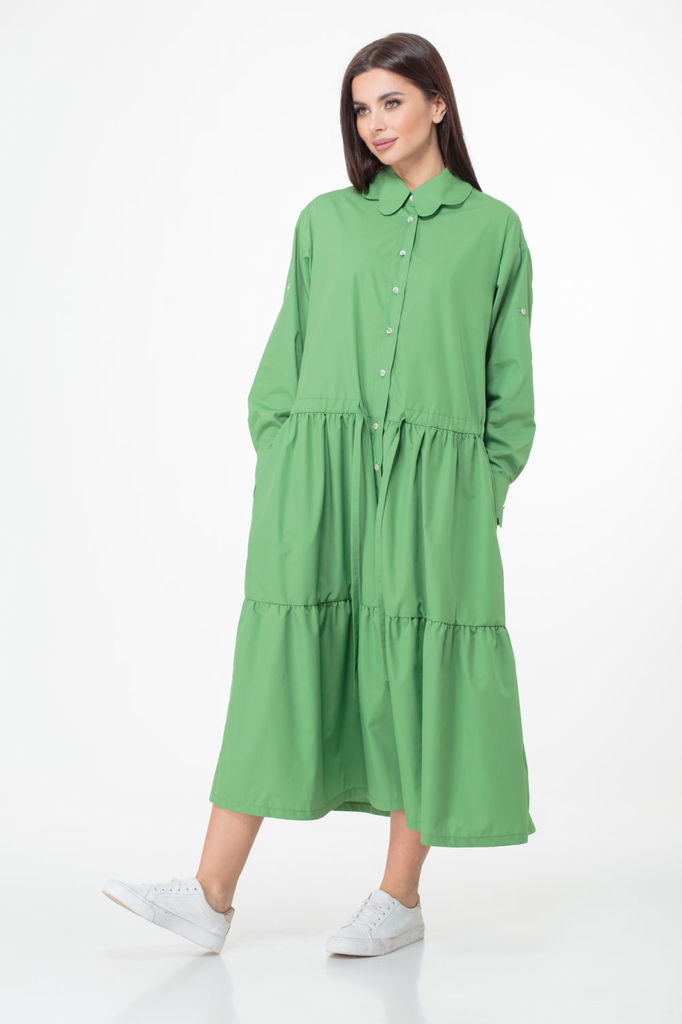 Состав: Хлопок-100%; Сезон: Лето Рост: 164 Страна бренда: Беларусь Состав: Хлопок-100%; Одежда свободного силуэта была вынесена на подиум высокой моды Кристианом Диором. Расширенный крой, слегка заниж... Показать описаниеенная талия, подчёркнута кулиской с завязывающимся поясом, втачные длинные рукава с фигурными манжетами и возможностью регулировать длину. Нижняя часть с двумя присборенными воланами. Фигурный воротник рубашечного кроя, застёжка на пуговицы до уровня талии. Выполнено из премиального хлопка в сочных оттенках зелёного и жёлтого. Платье характеризуется гармоничным сочетанием вольного кроя и конструкторских линий. Замеры: Рост фотомодели – 171 см. Размер – 46. ОГ-обхват груди. ОТ-обхват талии. ОБ-обхват бедер. ДИ-длина изделия. ДР-длина рукава. Размер 46. ОГ-106; ОТ-106; ОБ-160; ДИ-119; ДР-60. Размер 48. ОГ-108; ОТ-112; ОБ-164; ДИ-119; ДР-60. Размер 50. ОГ-112; ОТ-116; ОБ-168; ДИ-119; ДР-60. Размер 52. ОГ-116; ОТ-120; ОБ-172; ДИ-119; ДР-60.