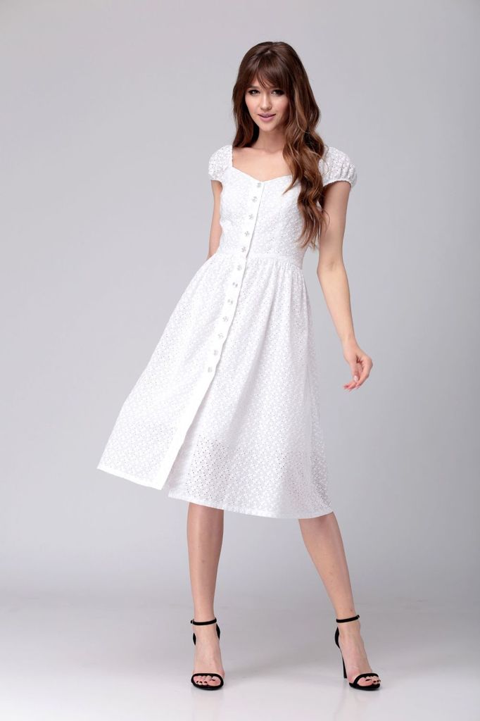 Состав: Хлопок-100%; Сезон: Лето Страна бренда: Беларусь Состав: Хлопок-100%; Натуральное платье из ришелье на подкладке со сквозной застёжкой на петли и пуговицы. По талии подрез со сборкой. Рукава к... Показать описаниерылышки. На рост 164 см: длина изделия - 114. На рост 170 см: длина изделия - 120. Подходит на рост 164-170 см.