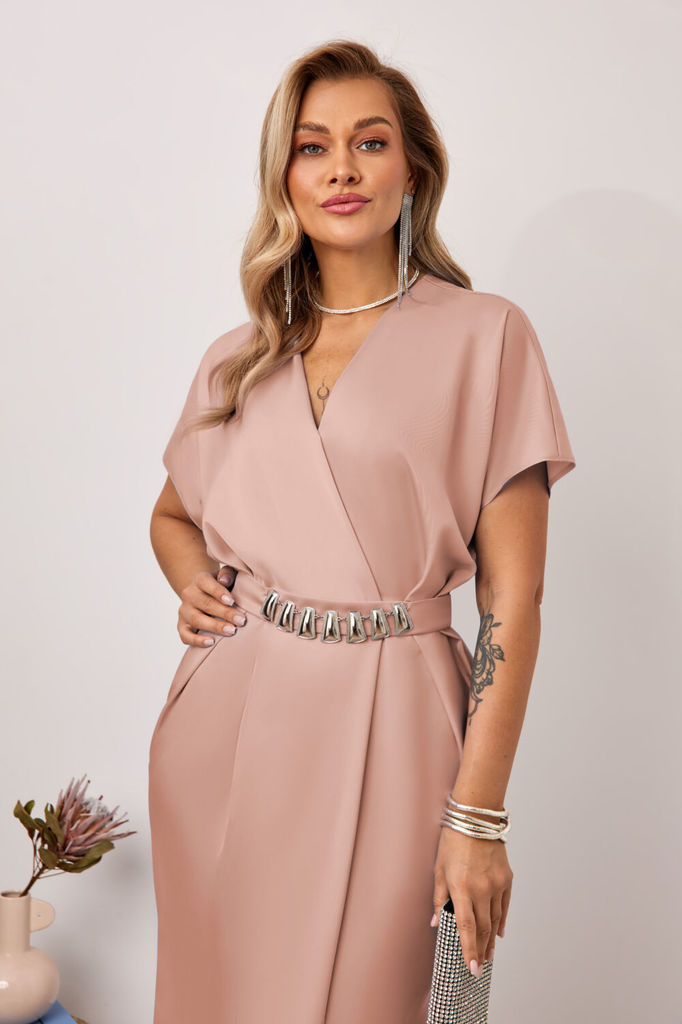 Состав: Вискоза-32%; ПЭ-65%; Эластан-3%; Сезон: Лето Рост: 164 Страна бренда: Беларусь Состав: Вискоза-32%; ПЭ-65%; Эластан-3%; Элегантное нарядное платье, выполнено из роскошной струящейся плательной... Показать описание ткани с добавлением вискозы. Платье с имитацией запаха по переду, отрезное по линии талии. В боковом шве платья потайная молния застежка. Рукав цельнокроеный, спущенный. Спинка платья отрезная по талии, с резинкой. В комплекте идет съемный пояс, декорированный пришивным украшением (Украшение может отличатся от фотографии!), с резинкой и застежкой на пуговицы в цвет платья. Модель удобная и практичная, вы будете в нем выглядеть неотразимо и нарядно.