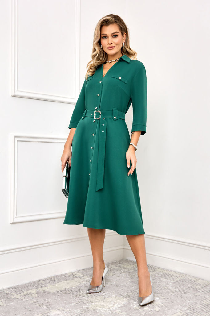 Состав: Вискоза-32%; ПЭ-65%; Эластан-3%; Сезон: Осень-Зима Рост: 164 Страна бренда: Беларусь Состав: Вискоза-32%; ПЭ-65%; Эластан-3%; Элегантное женское платье, выполнено из роскошной плательной ткани... Показать описание Барби с напылением. Платье А-силуэта, отрезное по линии талии. Платье по переду с застежкой на пуговицы, в боковых швах юбки функциональные карманы. Рукав втачной, слегка спущенный, по низу с манжетой. По талии пояс из основной ткани, с застежкой на металлическую пряжку. По груди пришита листочка, декорирована пришивной пуговицей. Модель прекрасно подойдет для торжественного мероприятия и ежедневной носки.