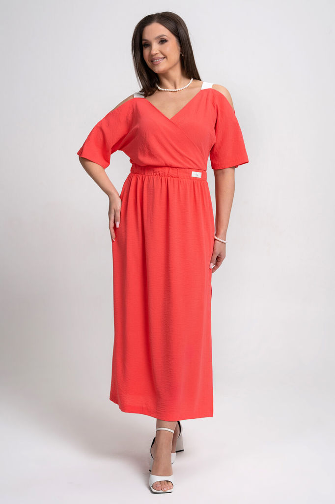 Состав: Вискоза-97%; Спандекс-3%; Сезон: Лето Рост: 164 Страна бренда: Беларусь Состав: Вискоза-97%; Спандекс-3%; Платье прямого силуэта, отрезное по линии талии с поясом на резинке, на широких бретел... Показать описаниеях (выполнены из отделочной ткани), с открытым плечевым поясом, с цельнокроеными короткими рукавами, по левому боковому разрез. Перед вверху на запах. Спинка со средним швом. Нижняя часть по линии талии дополнительно с небольшой сборкой.