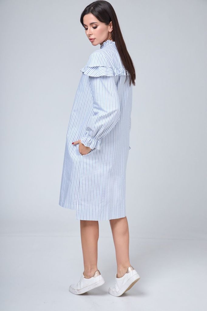 Состав: Хлопок-100%; Сезон: Весна Рост: 164 Страна бренда: Беларусь Состав: Хлопок-100%; Платье-рубашка из плотного хлопка высокого качества с необычными деталями создаст непринужденный образ! Платье ... Показать описаниепрямого силуэта, умеренного объема, средней длины На переде и спинке выполнены отрезные кокетки, украшены рюшем. Рукава втачные с каскадными воланами в верхней части, длинные, собраны на резинку на запястье. Горловина выполнена в виде стойки-рюша Застежка - притачная планка с петлями и пуговицами. Спинка удлинена относительно переда В модели интересно использовано направление полоски, пропорционально вытягивает фигуру. Цвет на фото может отличатся от цвета изделия в живую, из-за разницы освещения и цветопередачи экранов на которых просматривается изображение. Оставляя Ваш честный отзыв Будем благодарны за отзыв с фото. Вся необходимая информация о производителе указана на этикетке. Замеры: ОГ- объем груди; ОТ-объем талии; Об-объем бедер; ДИ-длина изделия; ДР-длина рукава(замер от горловины). Размер 48 ОГ-102; ОТ-102; ОБ-106; ДИ-102; ДР-57. Размер 50 ОГ-106; ОТ-106; ОБ-110; ДИ-103; ДР-58. Размер 52 ОГ-110; ОТ-110; ОБ-114; ДИ-103; ДР-59. Размер 54 ОГ-114; ОТ-114; ОБ-118; ДИ-104; ДР-60.