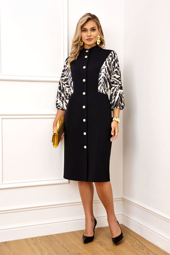 Состав: Вискоза-32%; ПЭ-65%; Спандекс-3%; Сезон: Осень-Зима Рост: 164 Страна бренда: Беларусь Состав: Вискоза-32%; ПЭ-65%; Спандекс-3%; Стильное женское платье, выполнено из высококачественного трикот... Показать описаниеажа, рукава платья выполнены из атласной ткани с модным дизайнерским принтом, в стиле летучая мышь, по низу рукав на резинке. Платье с застежкой по переду на пуговицы, с горловиной стойкой, что придает модели особый стиль и шарм. Модель удобная и практичная, отлично подойдет для ежедневной носки и торжественного мероприятия.