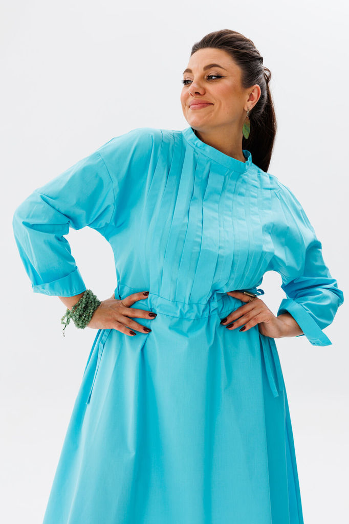 Состав: Хлопок-100%; Сезон: Лето Рост: 164 Страна бренда: Беларусь Состав: Хлопок-100%; Романтичное платье из премиального хлопка от Анелли – воплощение нежности и элегантности. Выполненное в сочных ц... Показать описаниеветах, это платье длины миди подарит вам уютное ощущение комфорта и станет незаменимой деталью вашего гардероба. Свободное платье А-силуэта с расклешённым низом очарует вас своей легкостью и изяществом. Параллельные складки на передней части добавляют изысканности, а удлинённая линия плеча и мягкая форма создают романтичный образ. Рубашечные рукава на притачной манжете с застёжкой на петлю и пуговицу добавляют классический штрих. Втачной пояс регулируется по ширине съёмными завязками, что позволяет подчеркнуть талию и создать идеальную посадку. Практичные боковые карманы обеспечивают дополнительное удобство. Воротник-стойка, застёгивающийся на спинке на навесную петлю и пуговицу, придаёт платью стильный и аккуратный вид. Пополните свой гардероб этой восхитительной вещью и наслаждайтесь романтичными образами каждый день! Замеры: Размер 46: ОГ-104; ОТ-94; ОБ-130; ДИ-116; ДР-48; ОП-36; ШП-23; Размер 48: ОГ-108; ОТ-98; ОБ-134; ДИ-117; ДР-48; ОП-37; ШП-23; Размер 50: ОГ-112; ОТ-102; ОБ-138; ДИ-118; ДР-49; ОП-38; ШП-23; Размер 52: ОГ-116; ОТ-106; ОБ-142; ДИ-118; ДР-49; ОП-40; ШП-23;