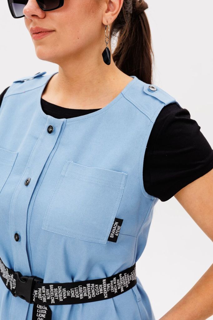 Состав: Хлопок-95%; Эластан-5%; Сезон: Лето Рост: 164 Страна бренда: Беларусь Состав: Хлопок-95%; Эластан-5%; Жилет из мягкого джинса от Анелли. Этот стильный и универсальный жилет можно носить как са... Показать описаниемостоятельное платье или как сарафан, сочетая с футболкой или лонгсливом. Прямой силуэт подчеркивает фигуру, сохраняя при этом удобство и свободу движений. Застежка-планка на петли и пуговицы добавляет образу акцент и позволяет регулировать посадку по фигуре. Элемент военного шика – кокетка с погонами – не только держит форму, но и придает модели характерный стиль. Практичность сочетается с модным дизайном: два накладных кармана на полочке и два скрытых кармана в боковых швах обеспечивают удобство, а боковые разрезы добавляют динамики силуэту. Пояс в комплекте подчеркивает талию, позволяя создавать разные варианты носки. Отделка репсовой лентой с буквами придает жилету индивидуальность и делает его узнаваемым. Мягкий джинс приятен к телу, а насыщенные цвета усиливают стильный эффект. Этот жилет-платье папоротников-зеленого цвета – идеальный выбор для тех, кто ценит комфорт, трендовый дизайн и многофункциональность в одежде. Он легко впишется в повседневные образы, добавив им яркости и современности. Замеры: Размер 50: ОГ-104; ОБ-114; ДИ-114; Размер 52: ОГ-108; ОБ-119; ДИ-115; Размер 54: ОГ-112; ОБ-123; ДИ-115; Размер 56: ОГ-117; ОБ-128; ДИ-115; Размер 58: ОГ-122; ОБ-133; ДИ-116; Размер 60: ОГ-127; ОБ-138; ДИ-116;