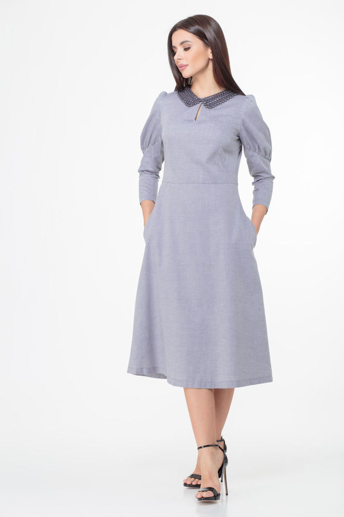 Состав: Хлопок-100%; Сезон: Лето Рост: 164 Страна бренда: Беларусь Состав: Хлопок-100%; Романтичное платье из премиального хлопка со съемным воротником - выбор современной леди! Платье полуприлегающег... Показать описаниео силуэта, отрезное по линии талии, длиной миди. На передней и задней части лифа выполнены декоративные талиевые вытачки. Рукава имеют интересный подрез, верхняя часть обьемно присборена по шву подреза и окату. Длина рукава 3/4 По центру переда обработана застежка "капля" с навесной петлёй и пуговицей. По спинке – потайная молния. Съемный воротничок дополняет образ, в зависимости от случая, платье можно носить и без него. Замеры: Рост фотомодели – 171 см. Размер – 44. ОГ-обхват груди. ОТ-обхват талии. ОБ-обхват бедер. ДИ-длина изделия. ДР-длина рукава. Размер 44. ОГ-88; ОТ-76; ОБ-108; ДИ-115; ДР-52 Размер 46. ОГ-92; ОТ-80; ОБ-112; ДИ-115; ДР-52 Размер 48. ОГ-96; ОТ-84; ОБ-116; ДИ-115; ДР-52 Размер 50. ОГ-100; ОТ-88; ОБ-120; ДИ-115; ДР-52