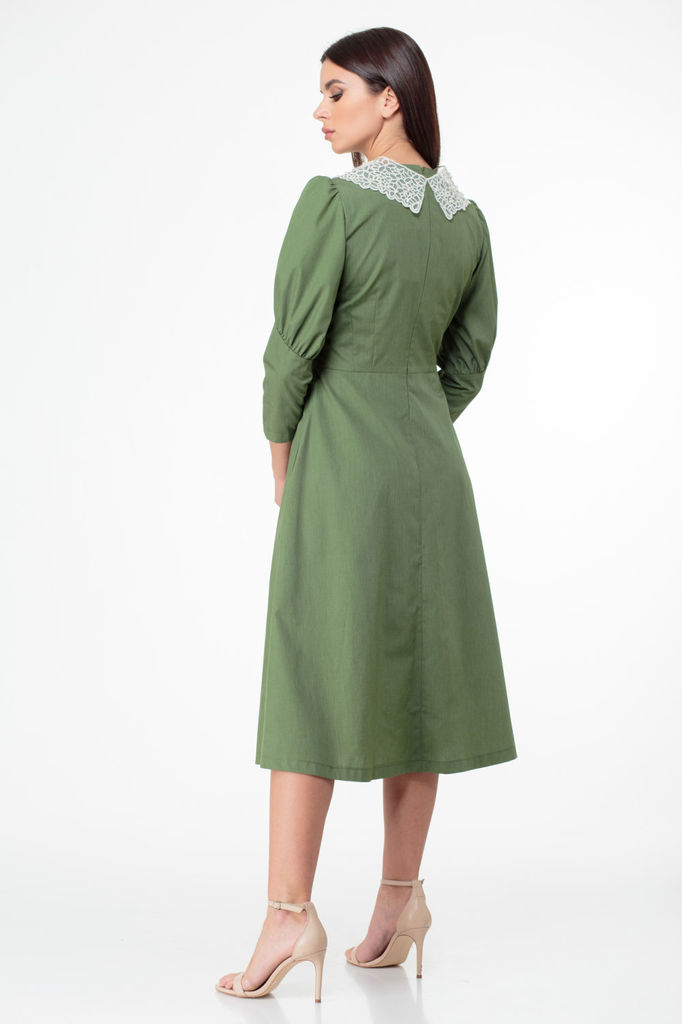Состав: Хлопок-100%; Сезон: Весна Рост: 164 Страна бренда: Беларусь Состав: Хлопок-100%; Романтичное платье из премиального хлопка со съемным воротником - выбор современной леди! Платье полуприлегающе... Показать описаниего силуэта, отрезное по линии талии, длиной миди. На передней и задней части лифа выполнены декоративные талиевые вытачки. Рукава имеют интересный подрез, верхняя часть обьемно присборена по шву подреза и окату. Длина рукава 3/4 По центру переда обработана застежка "капля" с навесной петлёй и пуговицей. По спинке – потайная молния. Съемный воротничок дополняет образ, в зависимости от случая, платье можно носить и без него. Замеры: Рост фотомодели – 171 см. Размер – 44. ОГ-обхват груди. ОТ-обхват талии. ОБ-обхват бедер. ДИ-длина изделия. ДР-длина рукава. Размер 44. ОГ-88; ОТ-76; ОБ-108; ДИ-115; ДР-52 Размер 46. ОГ-92; ОТ-80; ОБ-112; ДИ-115; ДР-52 Размер 48. ОГ-96; ОТ-84; ОБ-116; ДИ-115; ДР-52 Размер 50. ОГ-100; ОТ-88; ОБ-120; ДИ-115; ДР-52