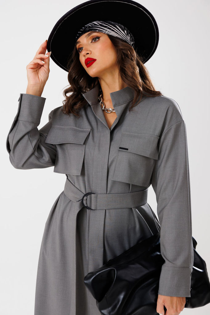 Состав: Вискоза-26%; Хлопок-72%; Эластан-2%; Сезон: Осень-Зима Рост: 164 Страна бренда: Беларусь Состав: Вискоза-26%; Хлопок-72%; Эластан-2%; Стильное и элегантное платье выполнено из высококачественн... Показать описаниеой плательной ткани с добавлением хлопка и вискозы. Платье по переду с застежкой на молнию (100 см), накладными карманами и декорировано пришивными пуговицами. По талии платье декорировано съемным поясом (тесьма может отличаться от той, что указана на фотографии) с пряжкой-застежкой и резинкой, что придет модели особый шарм. Рукав платья втачной, с манжетой и застежкой на две пуговицы. Горловина платья с воротником стойкой. Платье без подкладки. Модель стильная и практичная, прекрасно дополнит ваш гардероб, вы будете выглядеть неотразимо.