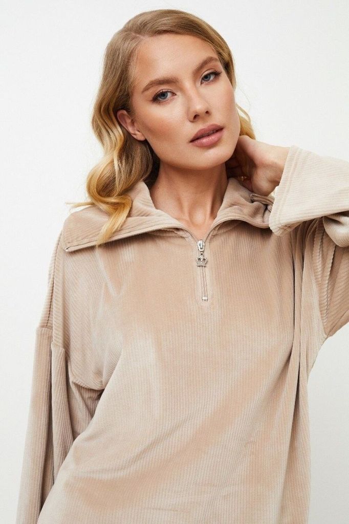 Состав: ПЭ-95%; Эластан-5%; Страна бренда: Латвия Состав: ПЭ-95%; Эластан-5%; Представляем комплект Quinn, в котором комфорт сочетается с королевским стилем! В топе с длинными рукавами, уникальной зас... Показать описаниетежкой-молнией в форме короны и уютным высоким воротником вы почувствуете себя королевой, отдыхающей дома. Широкие брюки обеспечивают свободу движений и удобство благодаря карманам для предметов первой необходимости. Выполненный в бежевом цвете, этот комплект излучает неподвластную времени элегантность. Побалуйте себя набором Quinn и насладитесь комфортом и стилем! Материал велсофт в рубчик.