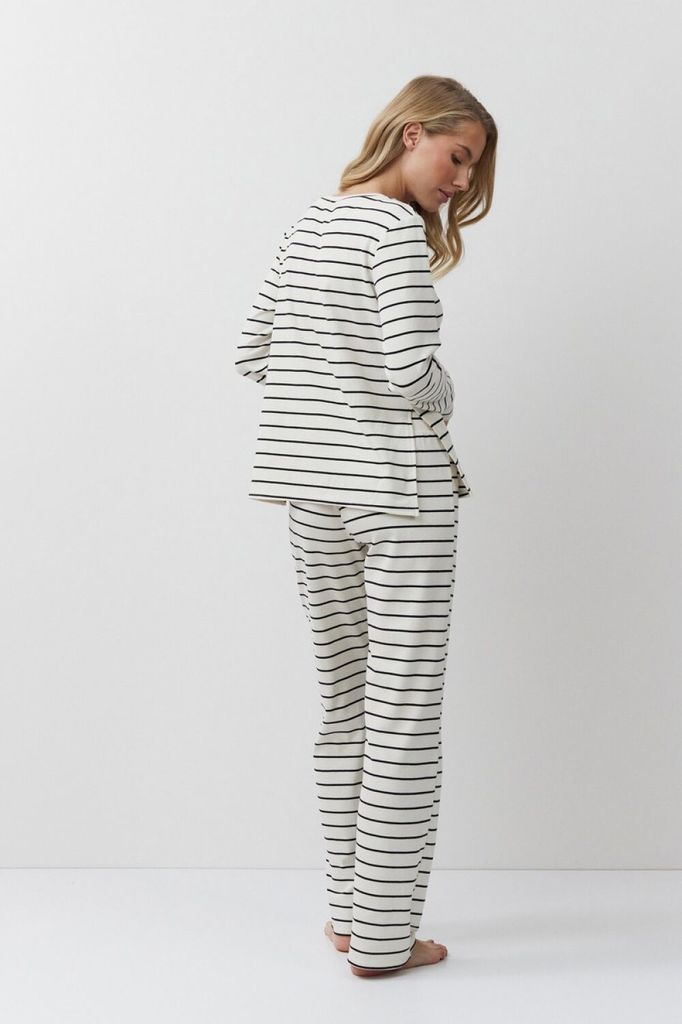 Состав: Хлопок-100%; Страна бренда: Польша Состав: Хлопок-100%; Представляем вам комплект Seraphine Long гармоничное сочетание комфорта и стиля. Пижама выполнена из лёгкой хлопковой ткани цвета экрю с... Показать описание чёрными полосками, что придаёт ей очарование. Топ на пуговицах с длинными рукавами имеет классический воротник и закруглённый низ, высокие манжеты на рукавах и небольшой разрез по центру спинки, придающий ему лёгкое очарование. В сочетании с брюками свободного кроя с эластичным поясом и карманами он идеально подходит для того, чтобы расслабиться в абсолютном комфорте или выйти в свет с непринуждённой элегантностью. Преобразите свой гардероб для отдыха с помощью комплекта Seraphine и ощутите непринуждённую изысканность как никогда раньше.