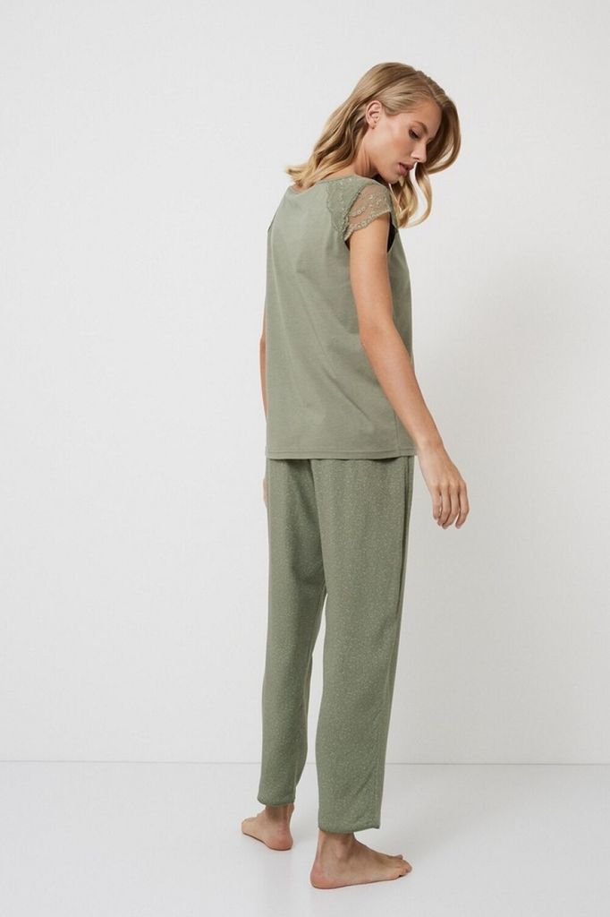 Состав: Вискоза-100%; Страна бренда: Польша Состав: Вискоза-100%; Представляем вашему вниманию нашу очаровательную пижаму Odelia, в которой каждая деталь — восхитительный сюрприз, ожидающий своего отк... Показать описаниерытия. Топ, сшитый из роскошной хлопково-модалной смеси в успокаивающем оливковом цвете. V-образный вырез и кружевные короткие рукава придают ему женственное очарование. Брюки длиной до щиколотки, сшитые из мягкой вискозы, дополнены регулируемым поясом-бантом и зелёной окантовкой. Они украшены очаровательным приглушённым абстрактным узором, который дополняет кружевные детали топа. Погрузитесь в очарование пижамы Odelia и испытайте новые ощущения от домашней одежды. Состав: футболка 50% хлопок, 50% модал; шорты 100% вискоза.