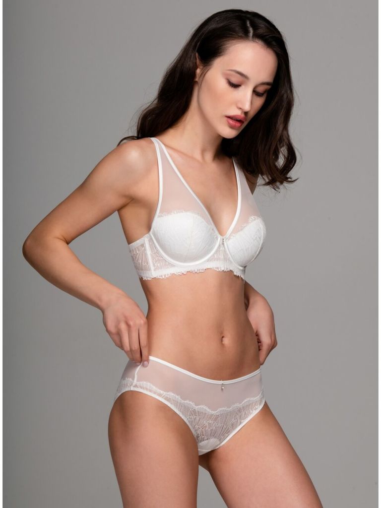 Состав: Эластан-10%; ПА-90%; Страна бренда: Россия Состав: Эластан-10%; ПА-90%; Комплект нижнего белья от торговой марки Индефини. В комплекте бюстгальтер и трусики. Бюстгальтер из полиамида, белого ц... Показать описаниевета, с кружевными вставками и обрамлением, на косточках, без Push-up, с косточками по бокам, со вставками из микросетки, на тонких бретелях, на застежках-крючках, бретели регулируются. Трусы-слипы из полиамида, белого цвета, с кружевными вставками и обрамлением, на мягкой резинке, средней посадки. К бюстгальтеру идут трусики, размерами: 75B-S, 75C-M, 75D-L, 80B-M, 80C-L, 80D-XL, 85B-XL, 85C-XL. Состав: 90% полиамид 10% эластан