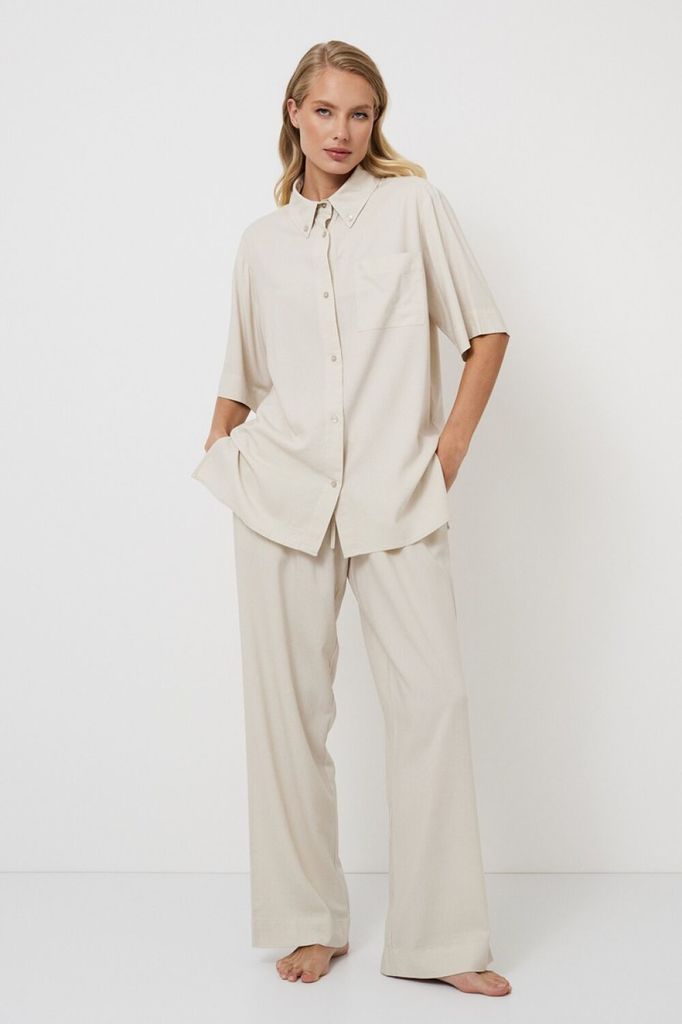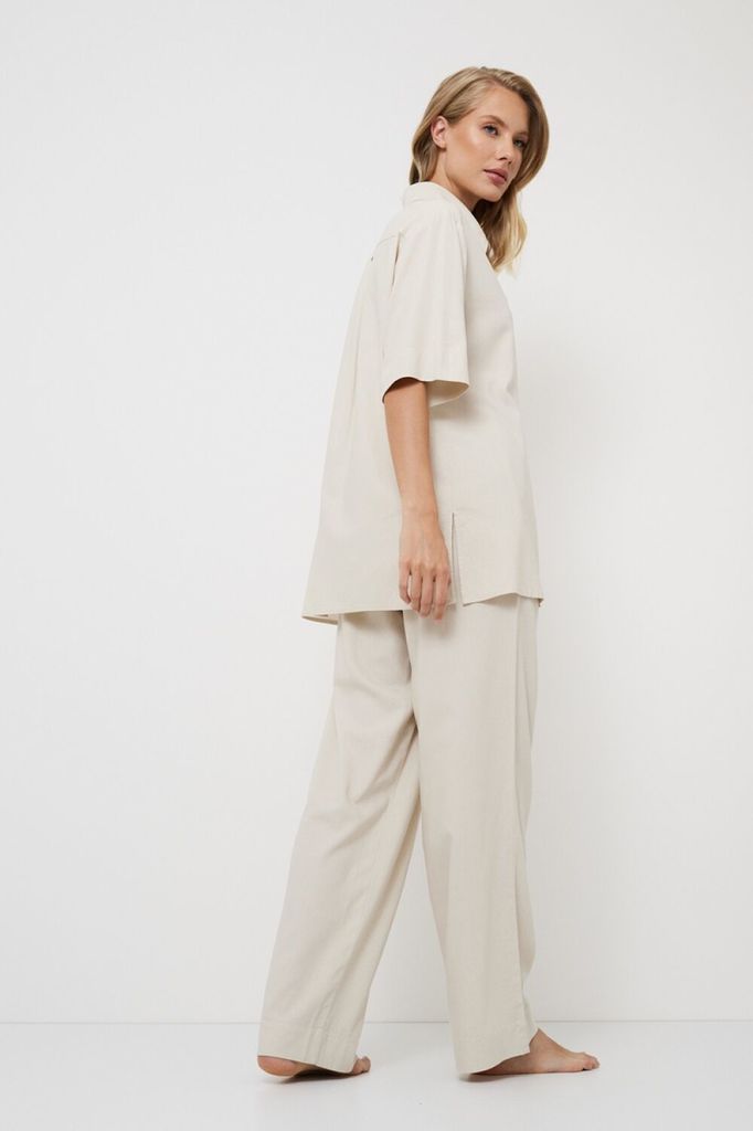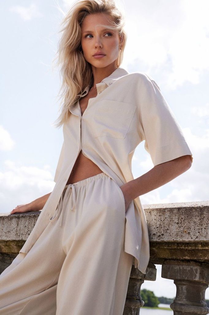 Состав: Вискоза-70%; Лён-30%; Страна бренда: Польша Состав: Вискоза-70%; Лён-30%; Представляем вам женский комплект Katarina — гармоничное сочетание комфорта и стиля. Изготовлен из вискозно-льняной см... Показать описаниееси в спокойном однотонном светло-бежевом цвете. Рубашка на пуговицах с короткими рукавами, украшена нагрудным карманом, обладает лёгким игривым шармом. Широкие штаны с высокой талией и практичными карманами. Пояс со шнурком. Этот комплект излучает очарование. Погрузитесь в атмосферу отдыха и стиля с комплектом Katarina, в котором комфорт и неподвластная времени элегантность идеально сочетаются.
