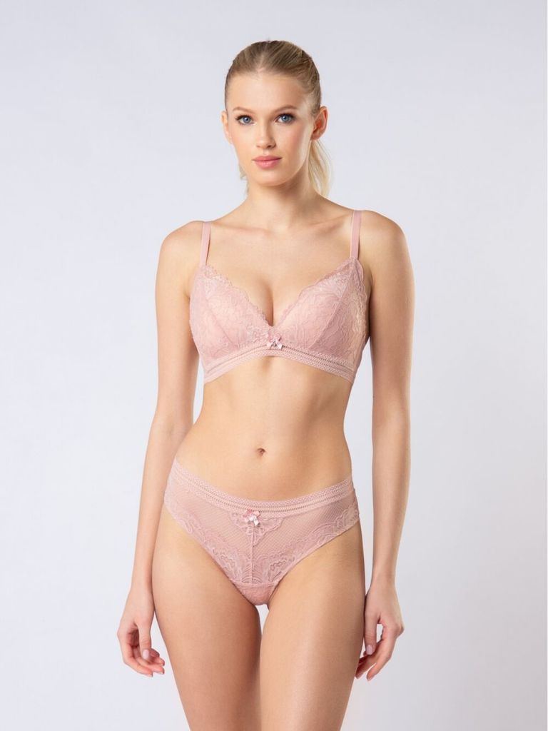 Состав: Эластан-10%; ПА-90%; Страна бренда: Россия Состав: Эластан-10%; ПА-90%; Комплект нижнего белья от торговой марки Индефини. В комплекте бюстгальтер и трусики. Бюстгальтер из полиамида, розового... Показать описание цвета, без косточек, без Push-up, с тонкой подкладкой, с кружевными вставками и обрамлением, на поясе из микросетки, на тонких регулируемых лямках. Трусики, стринги и слипы, из полиамида, розового цвета, из кружевной ткани, с обрамлением, со вставками из микросетки, средней посадки, на мягкой резинке. К бюстгальтеру идут трусы-слипы и трусы-стринги, размерами: 75B-S, 75C-M, 80B-M, 80C-L, 85B-XL. Состав: 90% полиамид 10% эластан