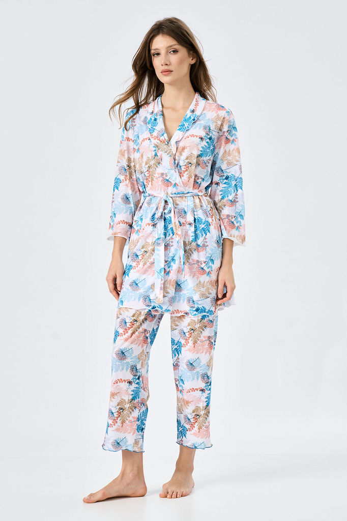 Состав: Вискоза-85%; Нейлон-15%; Страна бренда: Польша Состав: Вискоза-85%; Нейлон-15%; Комплект Amara легко сочетает в себе стиль и комфорт, создавая уютный образ, который идеально подойдет для любог... Показать описаниео повседневного случая, от ленивого дня дома до стильной прогулки по пляжу. Рубашка выполнена в классическом стиле, отличается изысканными манжетами на пуговицах и шикарными разрезами по бокам, что делает ее идеальным как для отдыха в помещении, так и на пляже. Брюки имеют пояс с регулируемыми завязками, дополнены металлическими украшениями, практичные карманы обеспечут стиль и комфорт.