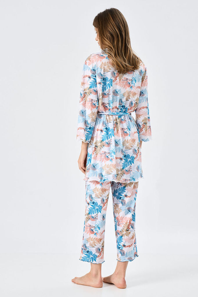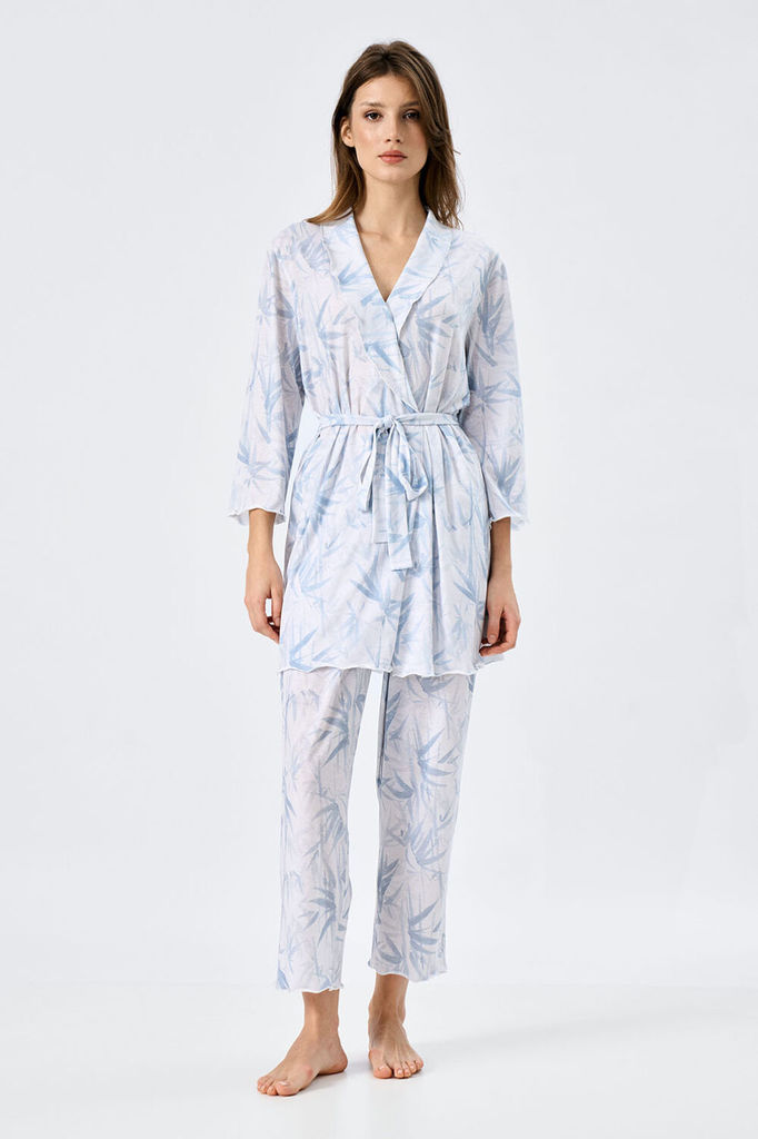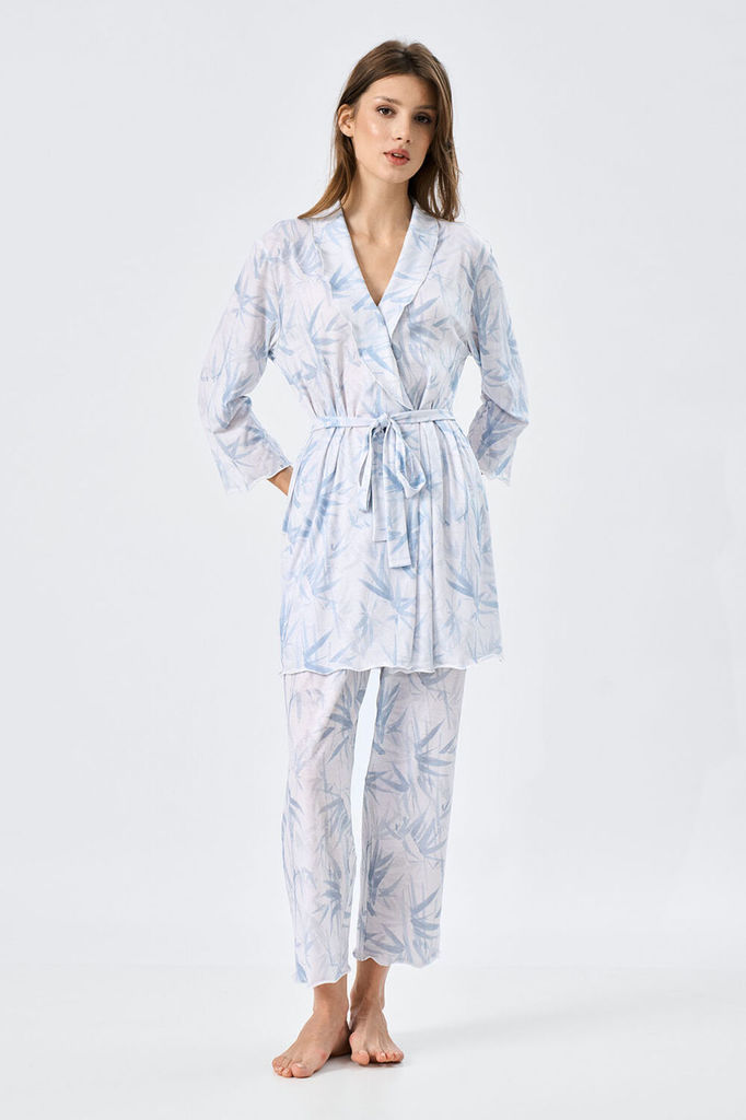 Состав: ПЭ-95%; Эластан-5%; Страна бренда: Латвия Состав: ПЭ-95%; Эластан-5%; Представляем комплект Francine, созданный для максимального комфорта и расслабления. Этот комплект, выполненный в безмятеж... Показать описаниеном арктическом голубом цвете, на ощупь мягкий, как облачко, что создает райские ощущения. И кто знает, может быть, благодаря его небесной мягкости вы просто унесетесь в страну грез! Верх с длинными рукавами и округлым вырезом горловины, а низ классического кроя с завязывающейся талией и удобными карманами. Комплект украшен изящной вышивкой в виде короны на верхней части и брюках, что придает ему элегантности, а атласная лента и атласная отделка по краям в тон украшают его, гарантируя, что вы будете чувствовать себя избалованной с головы до ног. Насладитесь комфортом и стилем в наборе Francine, который станет идеальным дополнением к вашим ритуалам релаксации.