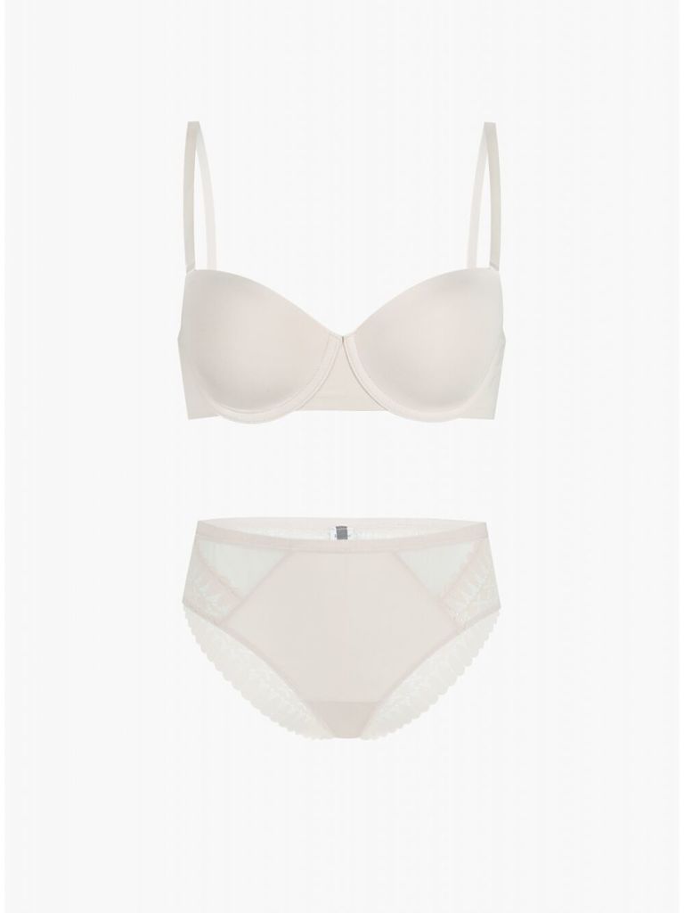 Состав: Эластан-10%; ПА-90%; Сезон: Лето Страна бренда: Россия Состав: Эластан-10%; ПА-90%; Комплект нижнего белья от торговой марки Индефини. В комплекте бюстгальтер-топ и трусики. Топ-бюстье бежевог... Показать описаниео цвета, изготовлен из эластичной синтетической ткани, на косточках и без Push-up, дополнен декоративными вставками-аксессуарами, на тонких регулируемых бретелях, объем под грудью регулируется застежкой на крючках. Трусы-слипы бежевого цвета, изготовлены из эластичной синтетической ткани, дополнены гигиенической хлопковой ластовицей и декоративными вставками-аксессуарами, средней посадки.
