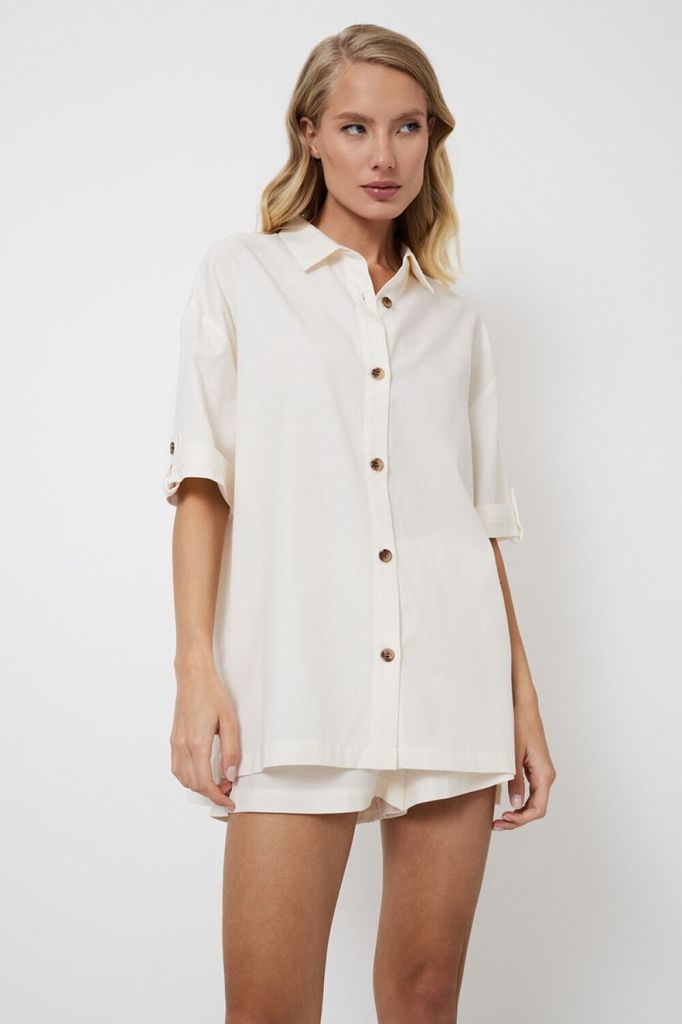 Состав: Вискоза-70%; Лён-30%; Страна бренда: Польша Состав: Вискоза-70%; Лён-30%; Представляем вам женский комплект Katarina — гармоничное сочетание комфорта и стиля. Изготовлен из вискозно-льняной см... Показать описаниееси в спокойном однотонном светло-бежевом цвете. Рубашка на пуговицах с короткими рукавами, украшена нагрудным карманом, обладает лёгким игривым шармом. Широкие шорты с высокой талией и практичными карманами. Пояс на эластичной резинке. Этот комплект излучает очарование. Погрузитесь в атмосферу отдыха и стиля с комплектом Katarina, в котором комфорт и неподвластная времени элегантность идеально сочетаются.