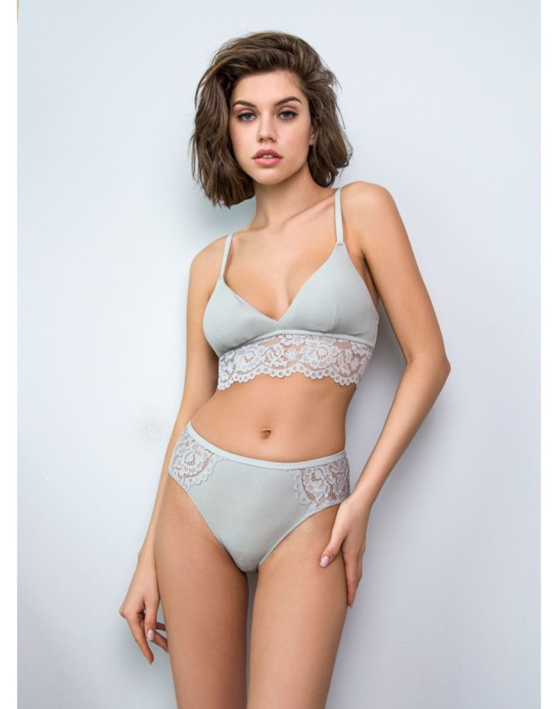 Состав: Эластан-10%; ПА-90%; Сезон: Осень-Зима Страна бренда: Россия Состав: Эластан-10%; ПА-90%; Комплект нижнего белья от торговой марки Индефини. В комплекте бюстгальтер и трусики. Бюстгальтер из п... Показать описаниеолиамида, серо-голубого цвета, без косточек, без Рush-up, с тонкой поролоновой подкладкой, со съемной чашкой, с кружевным обрамлением по поясе, на тонких лямках, лямки регулируются. Трусы-слипы из полиамида, серо-голубого цвета, с кружевными вставками и обрамлением, средней посадки, на мягкой резинке. К бюстгальтеру идут трусики, размерами: 75A-S, 75B-S, 75C-M, 80B-M, 80C-L.