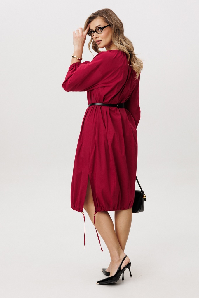 Женское платье из однотонной ткани для повседневной носки. Платье прямого силуэта, со спущенной линией плеча, и проймой, переходящей в подрез треугольной формы. Перед лифа состоит из двух частей: гори... Показать описаниезонтальной кокетки и нижней части. Застёжка на тесьму-молнию в центральном шве переда. Спинка платья состоит из двух частей: горизонтальной кокетки и нижней части, в среднем шве спинки обработана шлица. Модель дополнена съемным поясом. 74% лен, 26% вискоза.