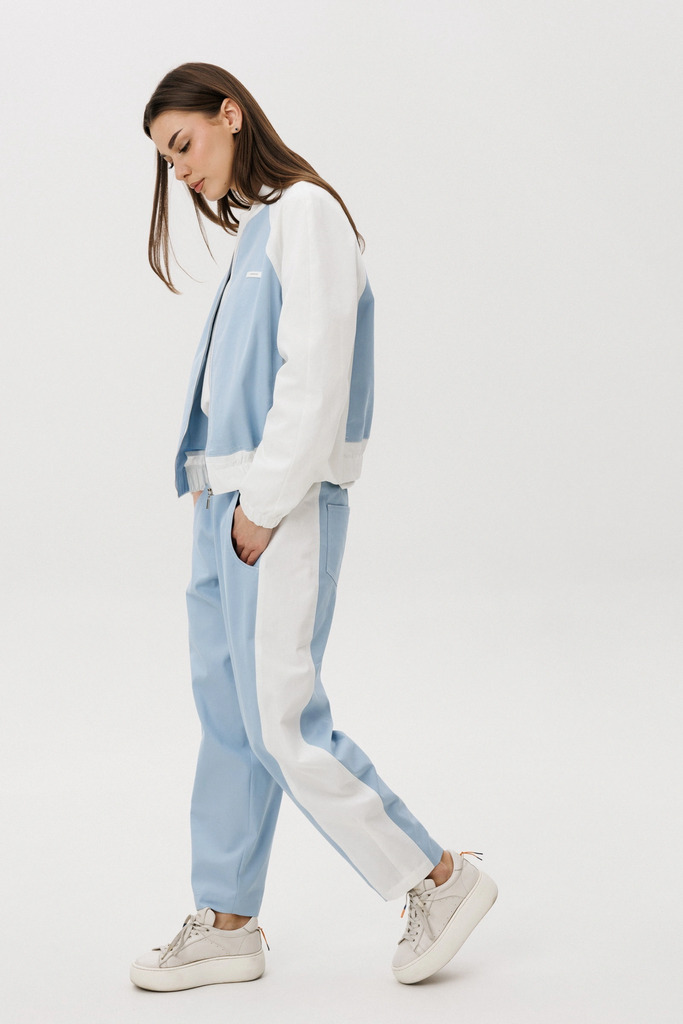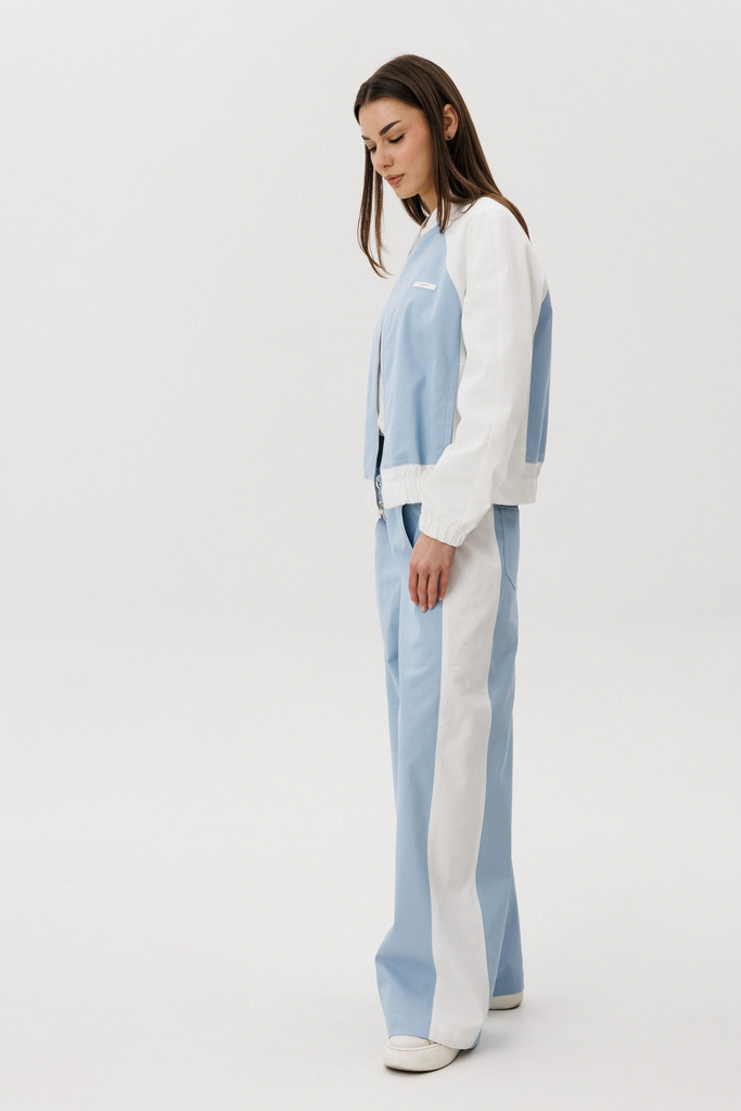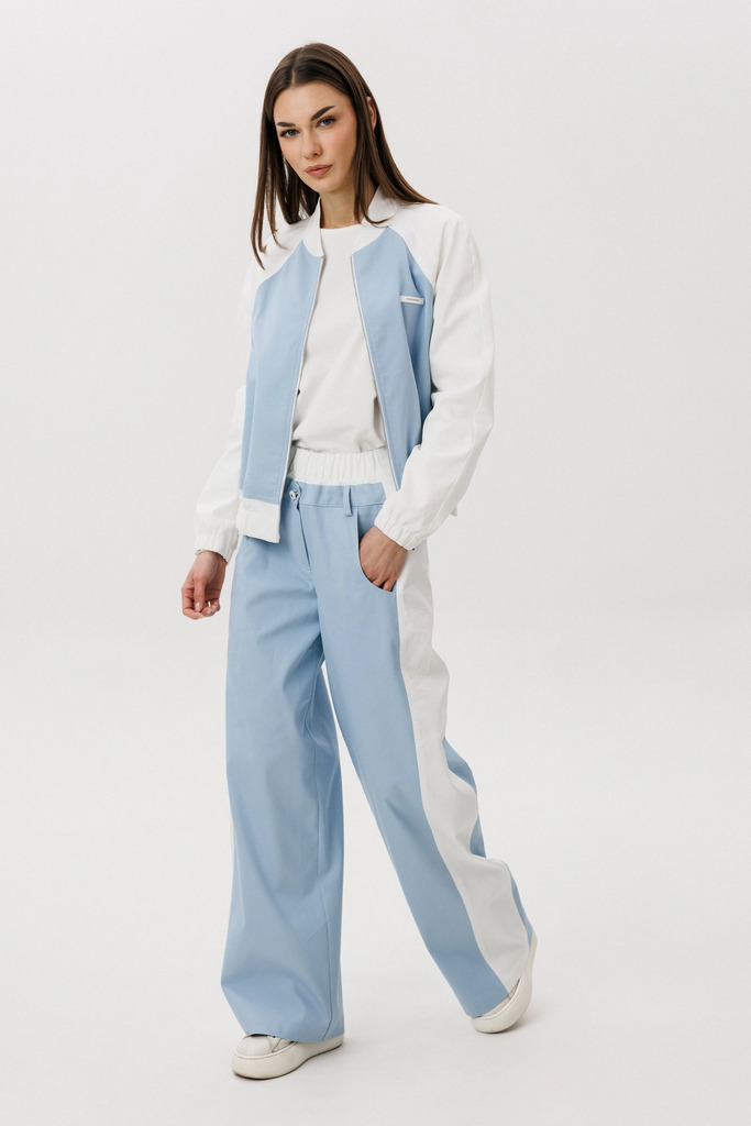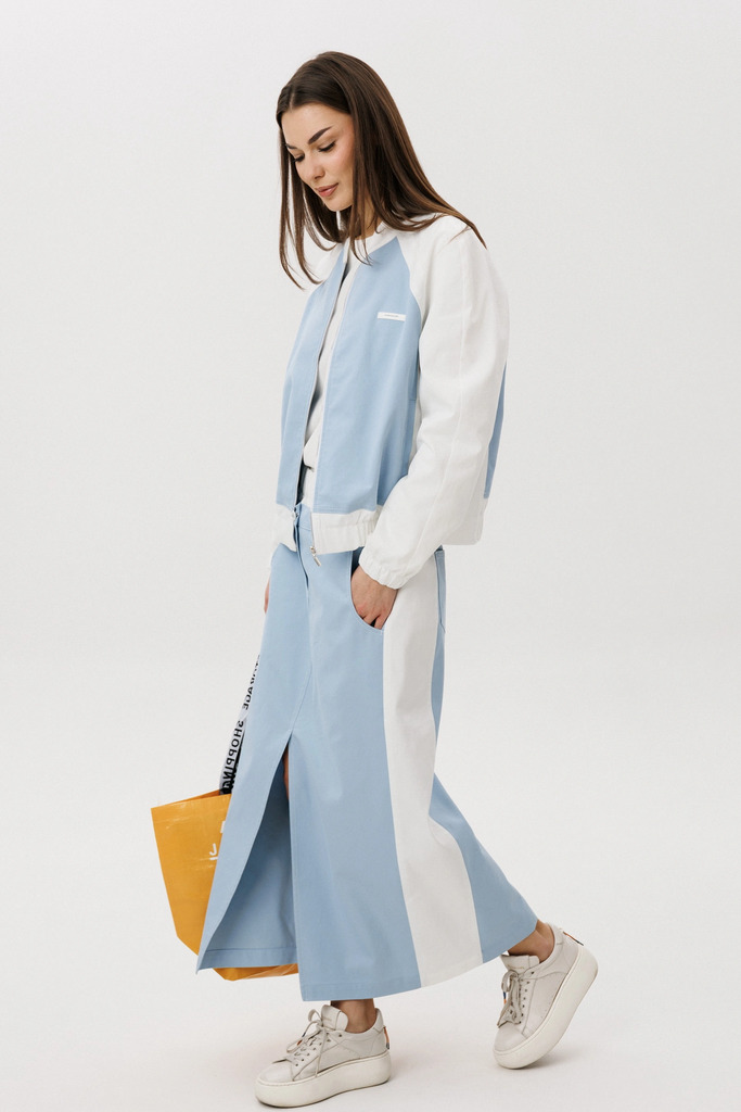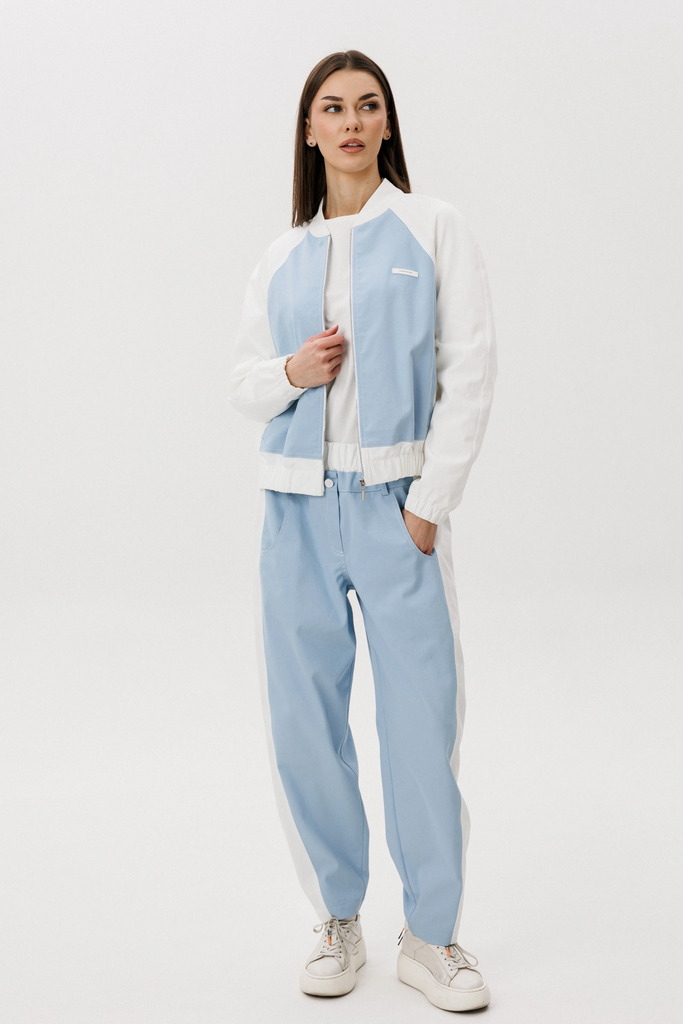 Динамичный костюм-тройка, построенный на контрасте цвета, фактуры и расслабленного кроя. Жакет и брюки выполнены из плотного цветного денима, который придаёт образу структуру и выразительность, сохран... Показать описаниеяя при этом комфорт повседневной носки. Лаконичный крой подчёркивает современный городской характер модели. Лонгслив в контрастную полоску добавляет образу графичность и визуальную лёгкость, создавая эффект продуманной многослойности. Брюки на эластичном поясе дополнены люверсами и отделочным шнуром — функциональная деталь, которая усиливает casual-настроение и подчёркивает дизайнерский подход. Комплект легко стилизуется под активный городской ритм, идеально подходит для повседневных образов и сочетает в себе комфорт, актуальный дизайн и яркую индивидуальность. хлопок 70% пэ 27% эластан 3%