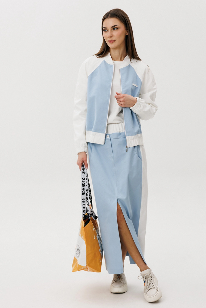 Из сезона в сезон комплекты из денима остаются must have, пожалуй ни одна одежда не может похвастаться таким постоянством. 2024-й вносит свои коррективы: джинсы становятся минималистичные, но эффектны... Показать описаниее - этакий девиз современных стиляг. В этом сезоне мы удивляем своих покупателей сочетанием нескольких оттенков денима в одном изделии. Нарочитая небрежность, оверсайз - это уже классика жанра. Свободный силуэт, рубашечный покрой, втачной воротник, рукав с притачной манжетой. Полочка с отрезной кокеткой, рельефами и карманом с клапаном. Спинка с отрезной кокеткой и рельефами. Рукав с локтевым швом и разрезом в нём, отделочным лампасом по центру рукава из контрастного денима, мягкой складкой и притачной манжетой. По низу куртки - притачная отделочная полоса в цвет лампаса. Застёжка центральная на петли и пуговицы. Юбка классическая джинсовая, слегка расширенная к низу, с 5-ю карманами. Пояс притачной контрастного цвета. По боковому шву контрастный лампас, подзоры передних карманов также из контрастного джинса. Переднее полотнище юбки с центральным швом, разрезом и застёжкой. Спинка с центральным швом, отрезной кокеткой и накладными карманами. Длина куртки около 52 см. Длина рукава с плечом около 74 см. Длина юбки около 85 см. хлопок 70%, пэ 27%, эластан 3%