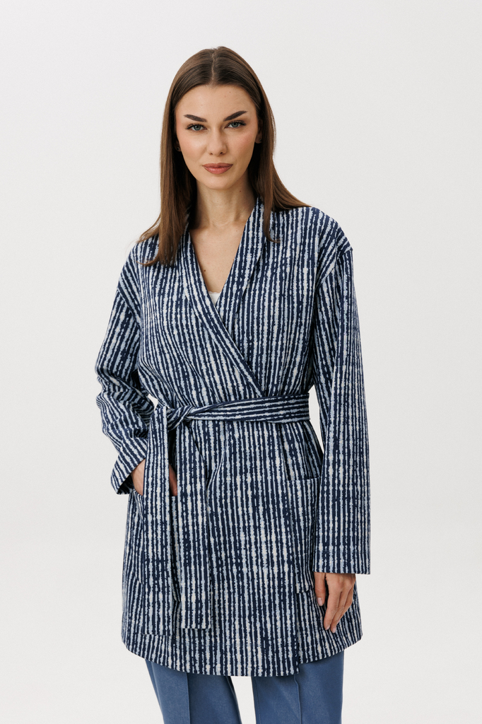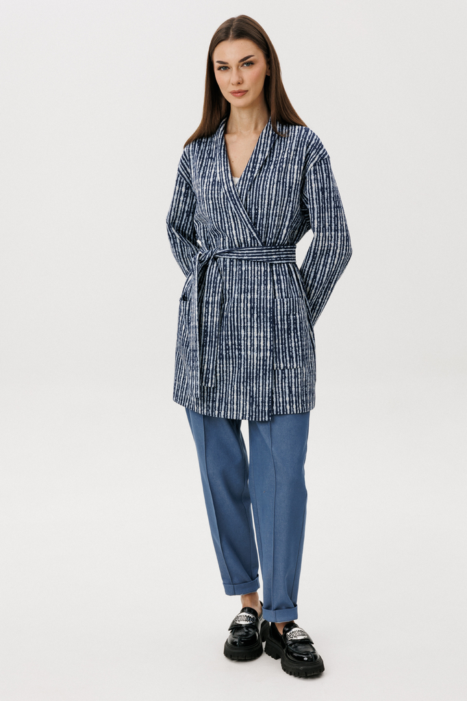 Стильный комплект, в котором выразительная фактура трикотажа сочетается с практичностью денима. Кардиган выполнен из мягкого трикотажного полотна с декоративным узором, который добавляет образу динами... Показать описаниеку и подчёркивает его fashion-характер. Прямой силуэт и аккуратная линия плеч делают модель универсальной и легко адаптируемой под разные стилистические сценарии. Брюки из джинсовой ткани с эластичным поясом обеспечивают комфортную посадку и свободу движений, сохраняя при этом аккуратный, собранный вид. Лаконичный крой позволяет сбалансировать активный верх и делает комплект удобным для повседневного городского ритма. Комплект идеально подойдёт для тех, кто ценит сочетание дизайна, комфорта и современного стиля — актуальное решение для повседневных и casual-образов. В комплект входит топ из хлопчатобумажной ткани! хлопок 70% пэ 27% эластан 3%