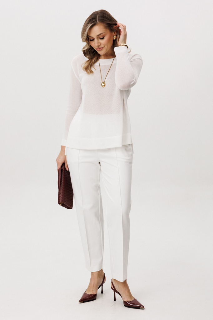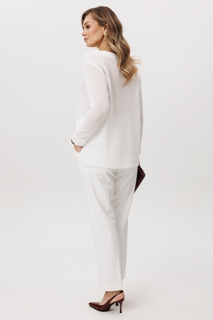 Воплотить уникальный образ на основе базовых вещей оказывается не так уж и сложно. Идеальное сочетание и пропорции-трикотажный джемпер в полоску и белые брюки с акцентной металлической фурнитурой.Тако... Показать описанией комплект вы можете миксовать по собственному вкусу, дополняя уже имеющиеся в гардеробе вещи. Свободный, расширенный силуэт, рубашечный покрой, рукав расширенный в области оката. По горловине отделочная тесьма-довяз. Брюки из смесовой льняной ткани, свободного покроя, на притачном поясе, эластичном в области спинки и частично переда. Передние половинки брюк мс оригинальной застежкой, центральным швом и наклонными боковыми карманами.Длина джемпер около 67см.Длина рукава около 30см.Длина брюк около 104 см. джемпер - хлопок 43%, вискоза 46%, пэ 11% брюки - вискоза 55%, лён 43%, спандекс 2%.