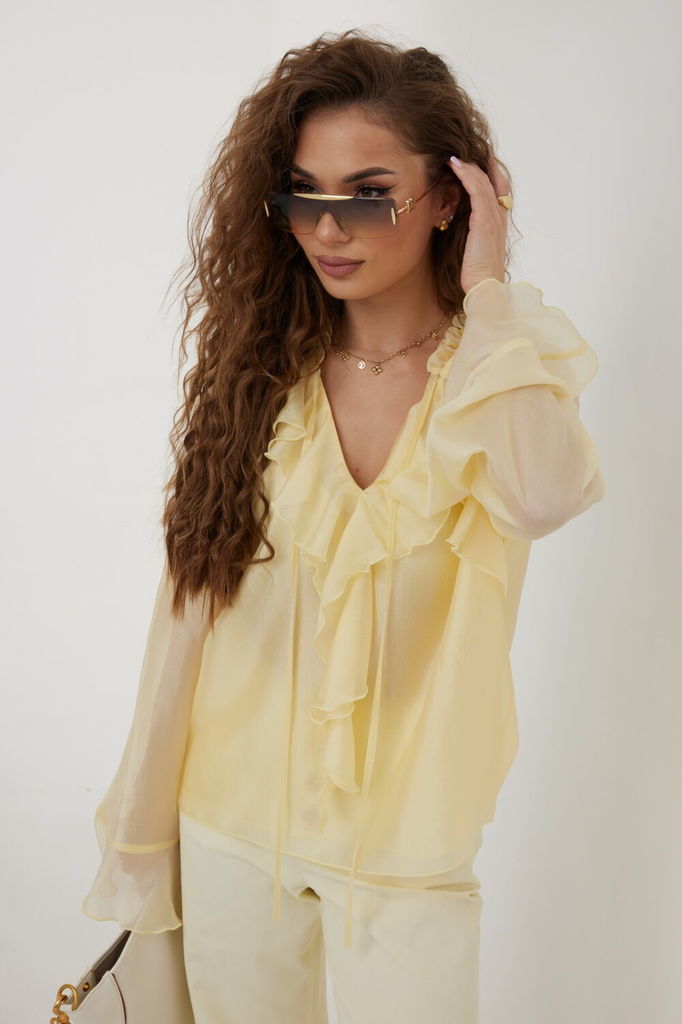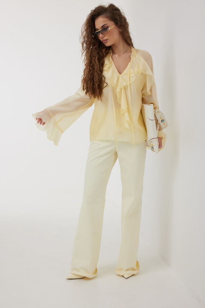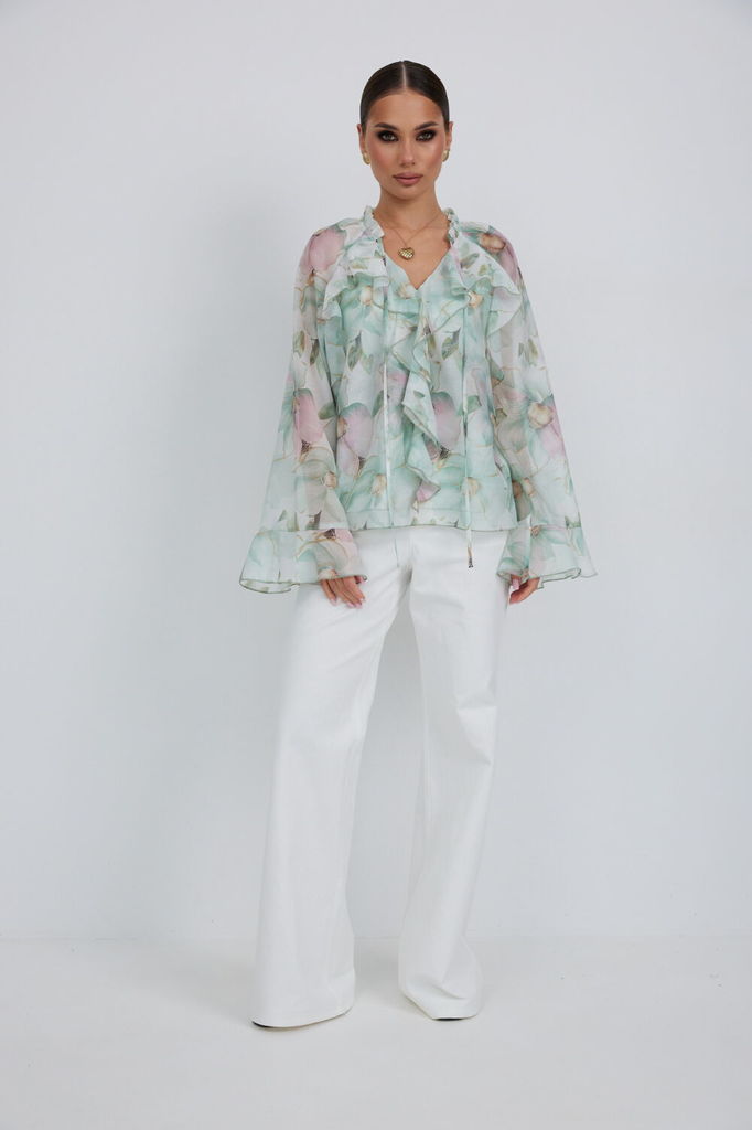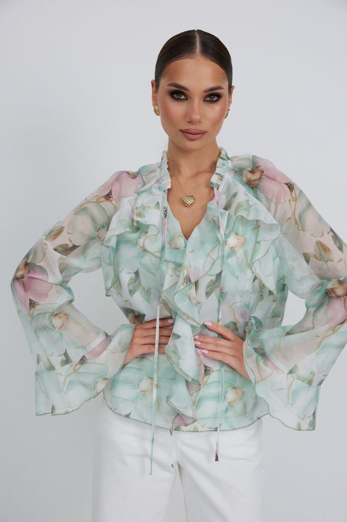 Состав: Вискоза-77%; ПЭ-23%; Сезон: Весна Рост: 164 Страна бренда: Беларусь Состав: Вискоза-77%; ПЭ-23%; Блузка прямого силуэта из полупрозрачной ткани «органза». Рукав реглан расширенный, по низ... Показать описаниеу волан. По переду горловина V-образной формы с рюшей и завязками. Перед с декоративным воланом. Перед и спинка двойные. Длина блузки 60 см. Длина рукава 77 см. Измерения по готовому изделию: 44 р-р: ОГ - 106 см., ОТ - 104 см., ОБ - 108 см. 46 р-р: ОГ - 110 см., ОТ - 108 см., ОБ - 112 см. 48 р-р: ОГ - 114 см., ОТ - 112 см., ОБ - 116 см. 50 р-р: ОГ - 118 см., ОТ - 116 см., ОБ - 120 см. 52 р-р: ОГ - 122 см., ОТ - 120 см., ОБ - 124 см.