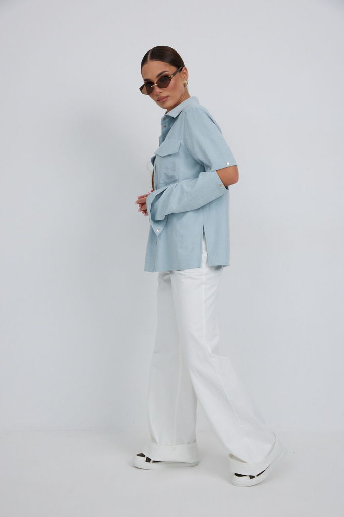 Состав: ПЭ-100%; Сезон: Весна Рост: 164 Страна бренда: Беларусь Состав: ПЭ-100%; Блузка из плательно - блузочной ткани свободного силуэта. Спинка с кокеткой и встречной складкой. По переду центральная... Показать описание застежка на кнопки, сверху накладные карманы с клапанами. Втачной рукав с отстегивающейся нижней частью. По низу рукава манжет с кнопкой. Воротник рубашечный со стойкой. Длина блузки 67 см. Длина рукава 63 см. Измерения по готовому изделию: 44 р-р: ОГ - 116 см., ОТ - 114 см., ОБ - 114 см. 46 р-р: ОГ - 120 см., ОТ - 118 см., ОБ - 118 см. 48 р-р: ОГ - 124 см., ОТ - 122 см., ОБ - 122 см. 50 р-р: ОГ - 128 см., ОТ - 126 см., ОБ - 126 см. 52 р-р: ОГ - 132 см., ОТ - 130 см., ОБ - 130 см.